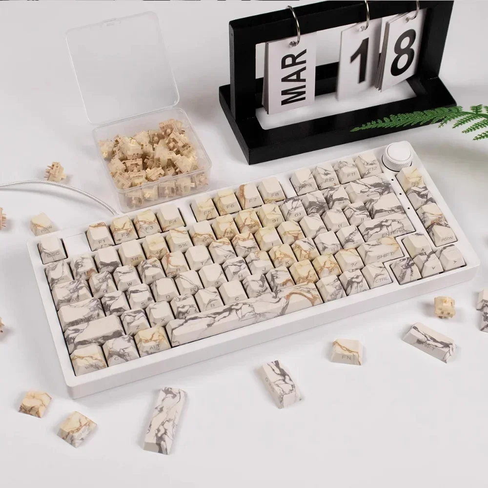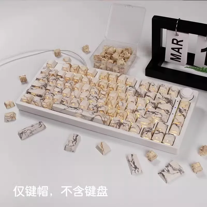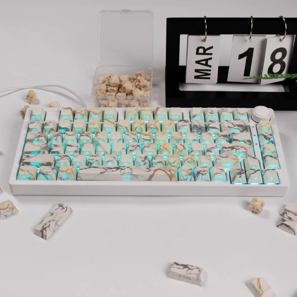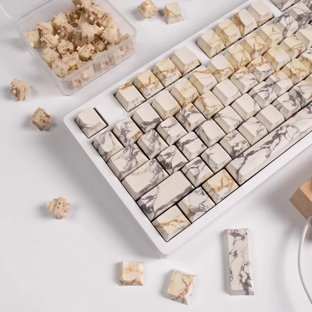 Marble Cherry Keycaps PBT Side Grabado Translúcido 130 Teclas para 60/64/84/98/108 Gaming Teclado mecánico MX Switch