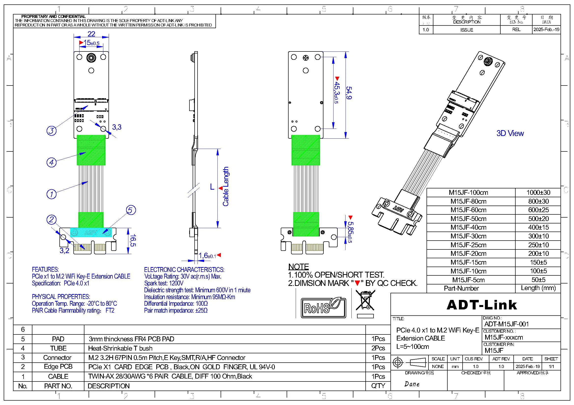 Part-NumberDescriptionBandwidthM14JFPCIe x1 to M.2 NVMe extension cablesPCIe 4.0 x1 (16G/bps)M15JFCable length Description: