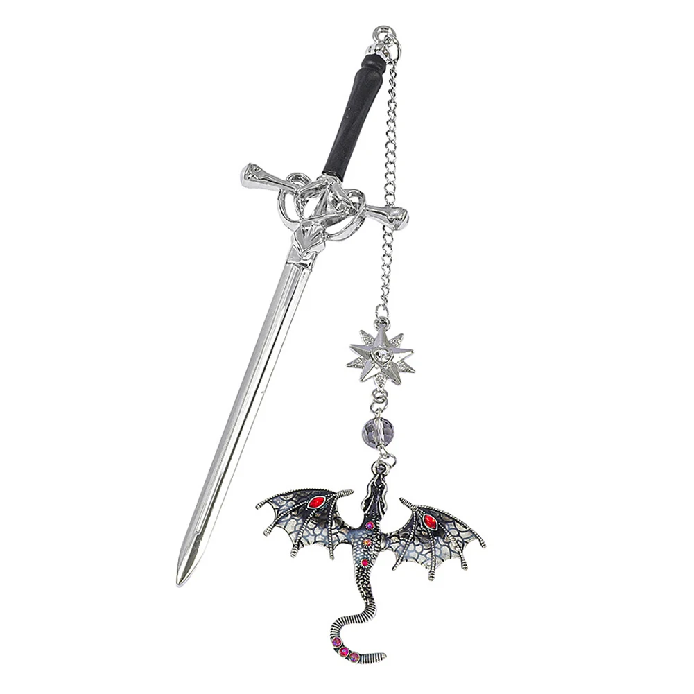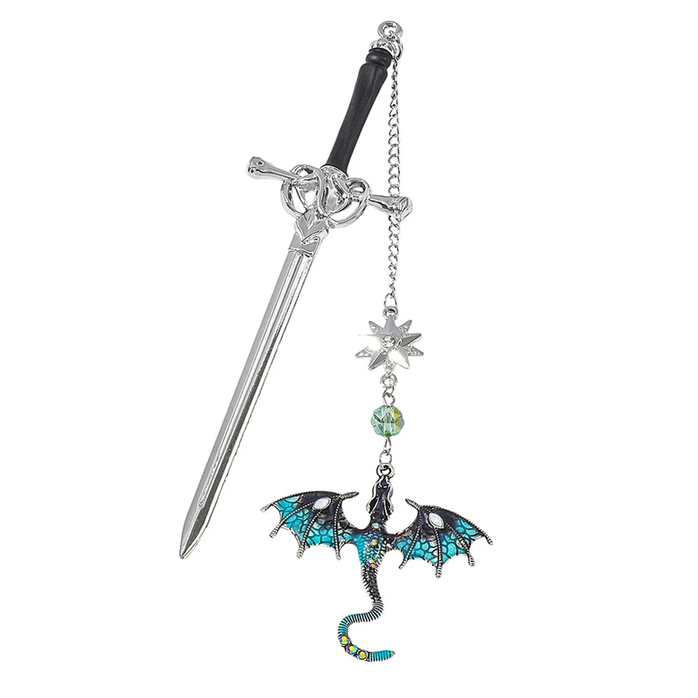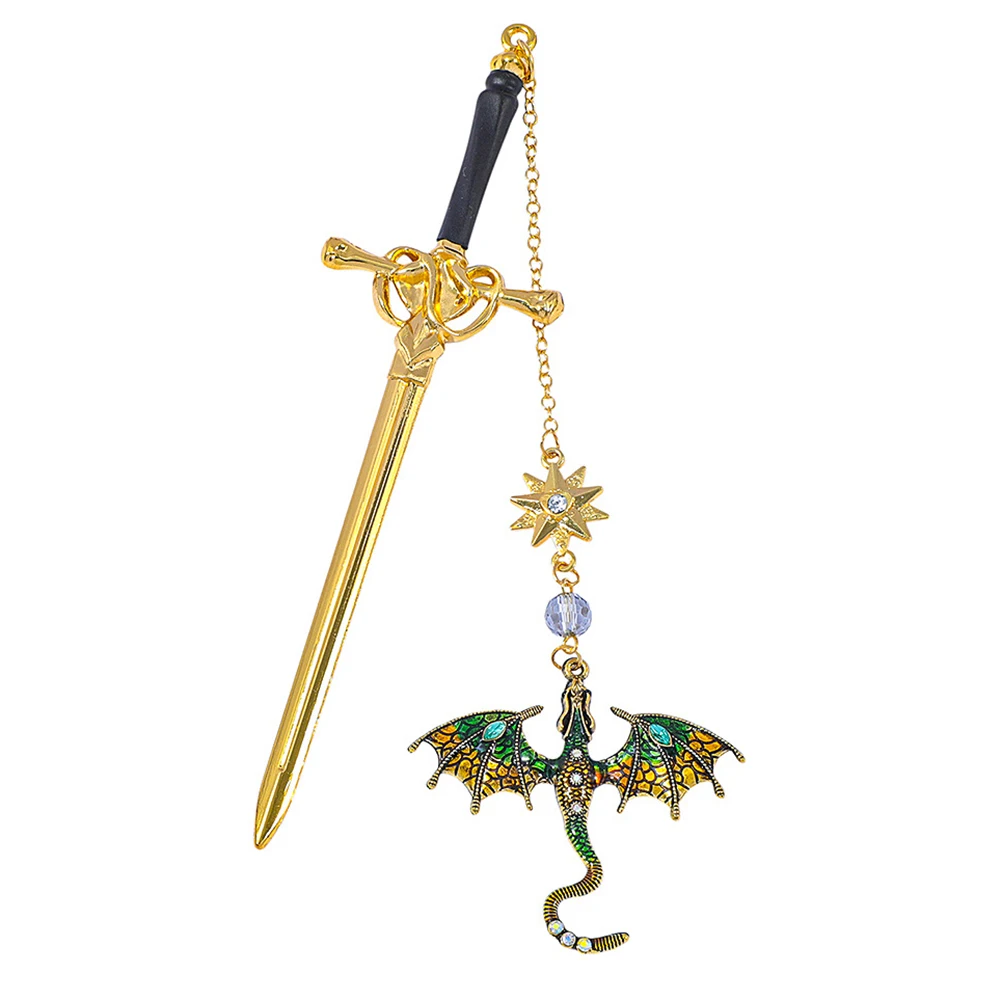 1. Diseño de dragón de fantasía:Este marcador de espada de dragón presenta un diseño único de marcador de libros de fantasía de metal, elaborado con metal plateado para una adición destacada a cualquier colección de lectura.Capture la magia y la intriga con este genial marcapáginas de dragón.