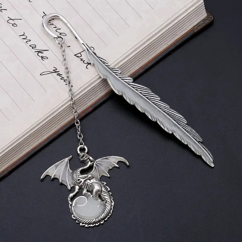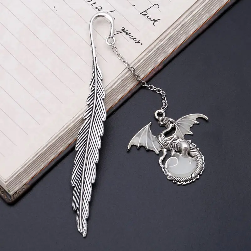 Comprar Marcador de libro luminoso que brilla en la oscuridad, marcador de dragón de plumas creativas, etiqueta