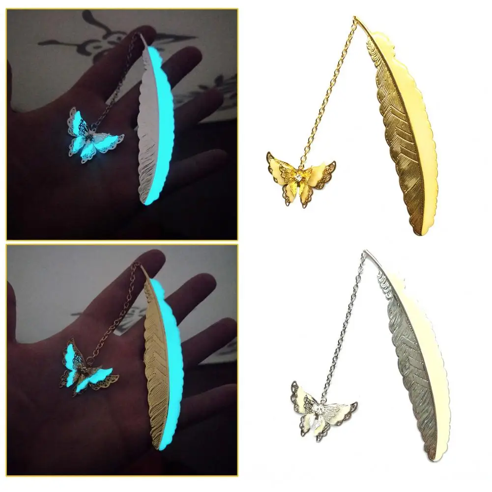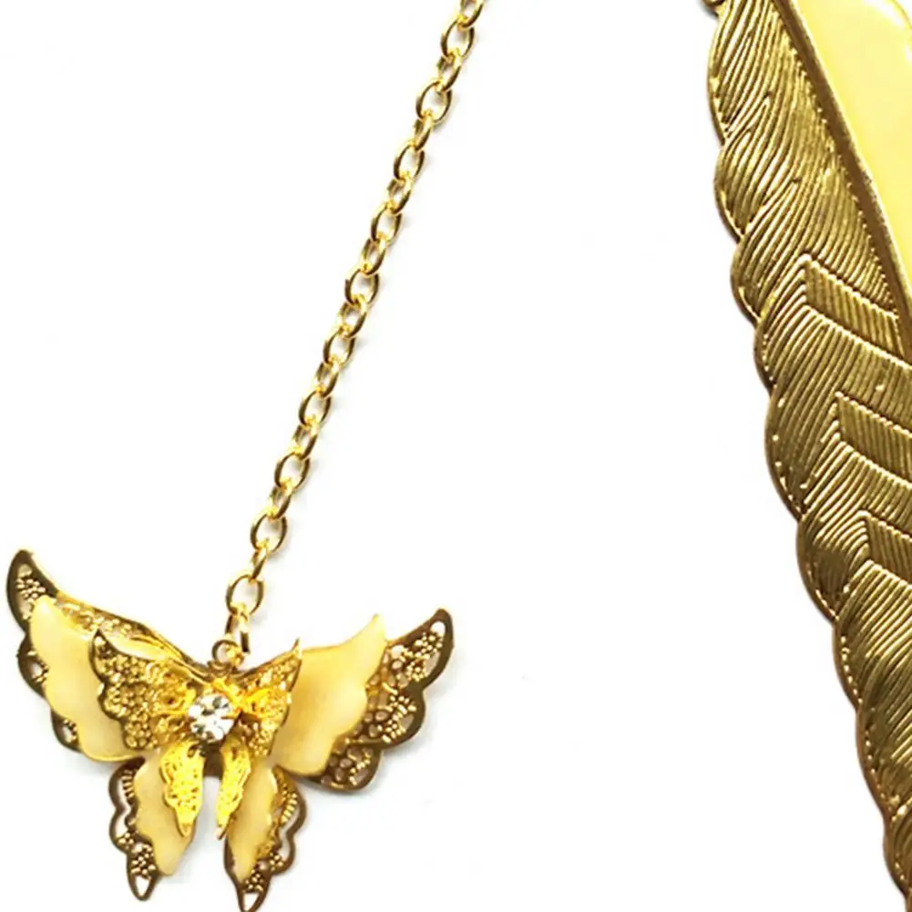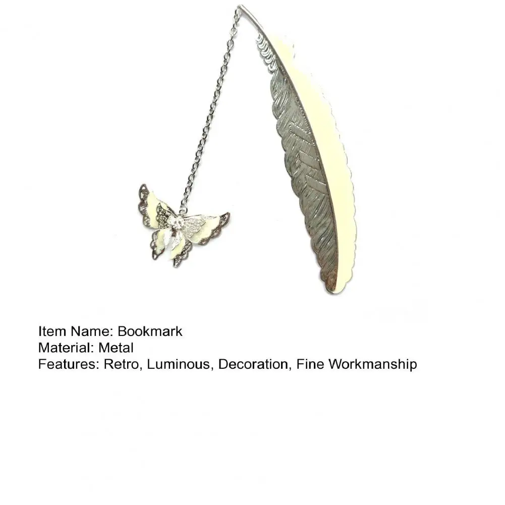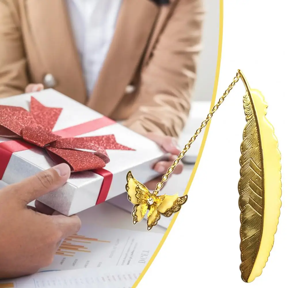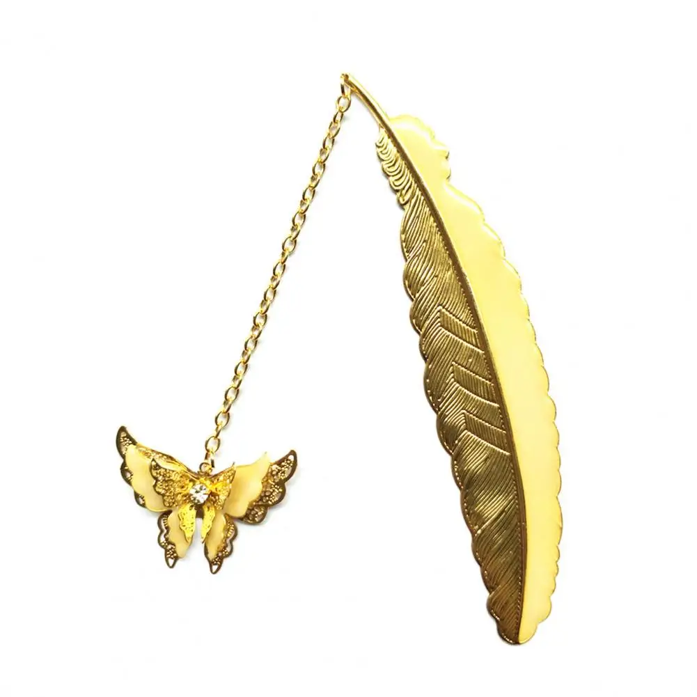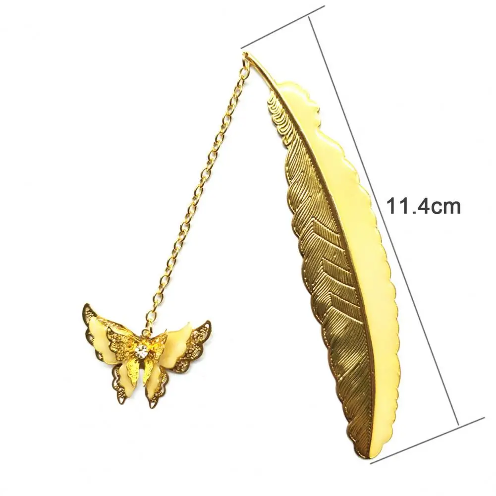 Marcapáginas con colgante de mariposa, marcapáginas elegante de plumas de Metal con colgante de mariposa, marcador de libro bonito Retro para niños, regalo para el hogar