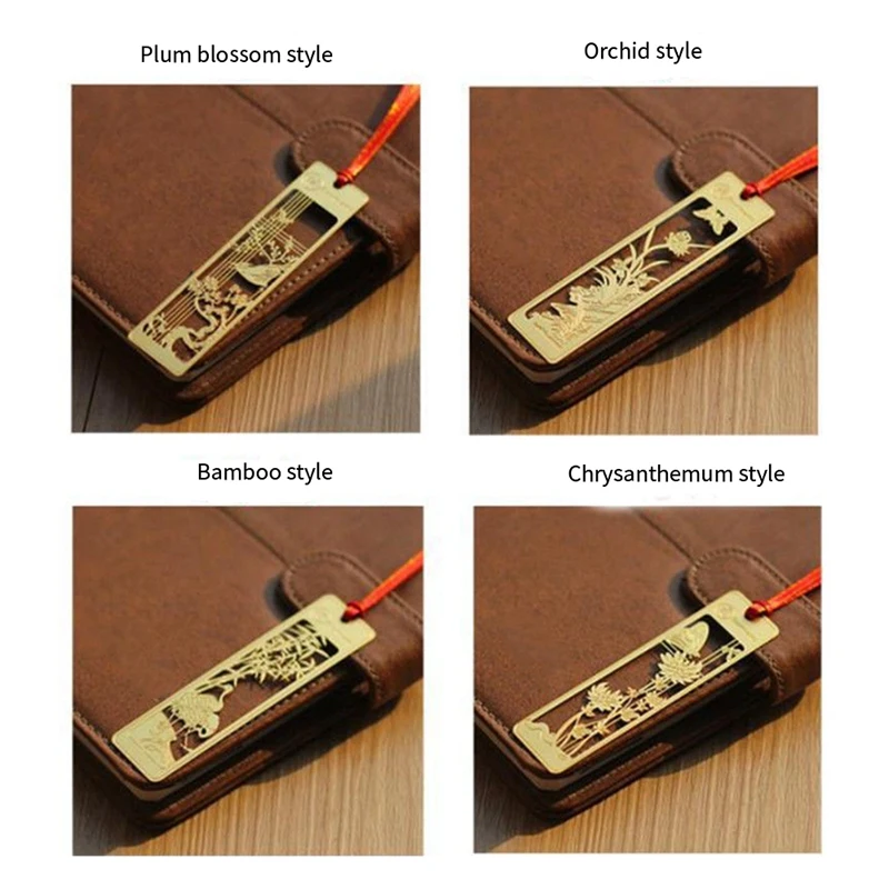 Marcapáginas de 4 piezas, crisantemo, flor de ciruelo, orquídea, bambú.