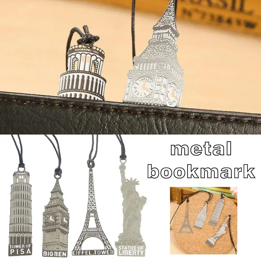 Comprar Marcapáginas de Metal para cuaderno, accesorios de cubierta, torre de hierro Retro, marcapáginas de Metal, decoración Vintage pequeña