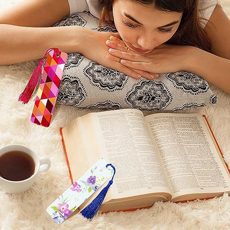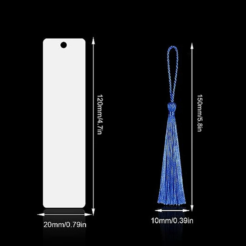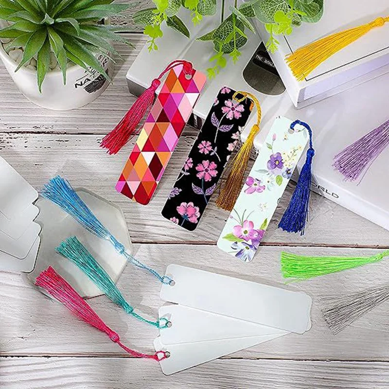 Marcapáginas de metal en blanco por sublimación de transferencia de calor, marcapáginas DIY de aluminio con borlas coloridas para llaveros proyectos artesanales duraderos