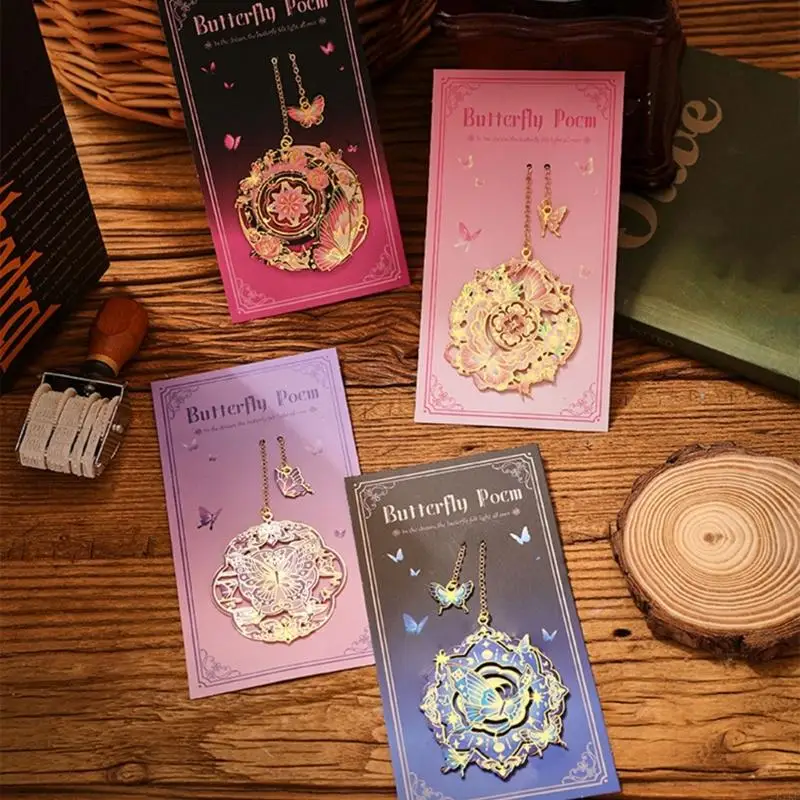 Características:OOTDTYExquisito diseño hueco: metal de calidad y elaborado mediante meticulosas técnicas huecas, muestra una elegante danza de mariposas y una belleza poética, lo que lo convierte en una obra de arte en material de papelería.