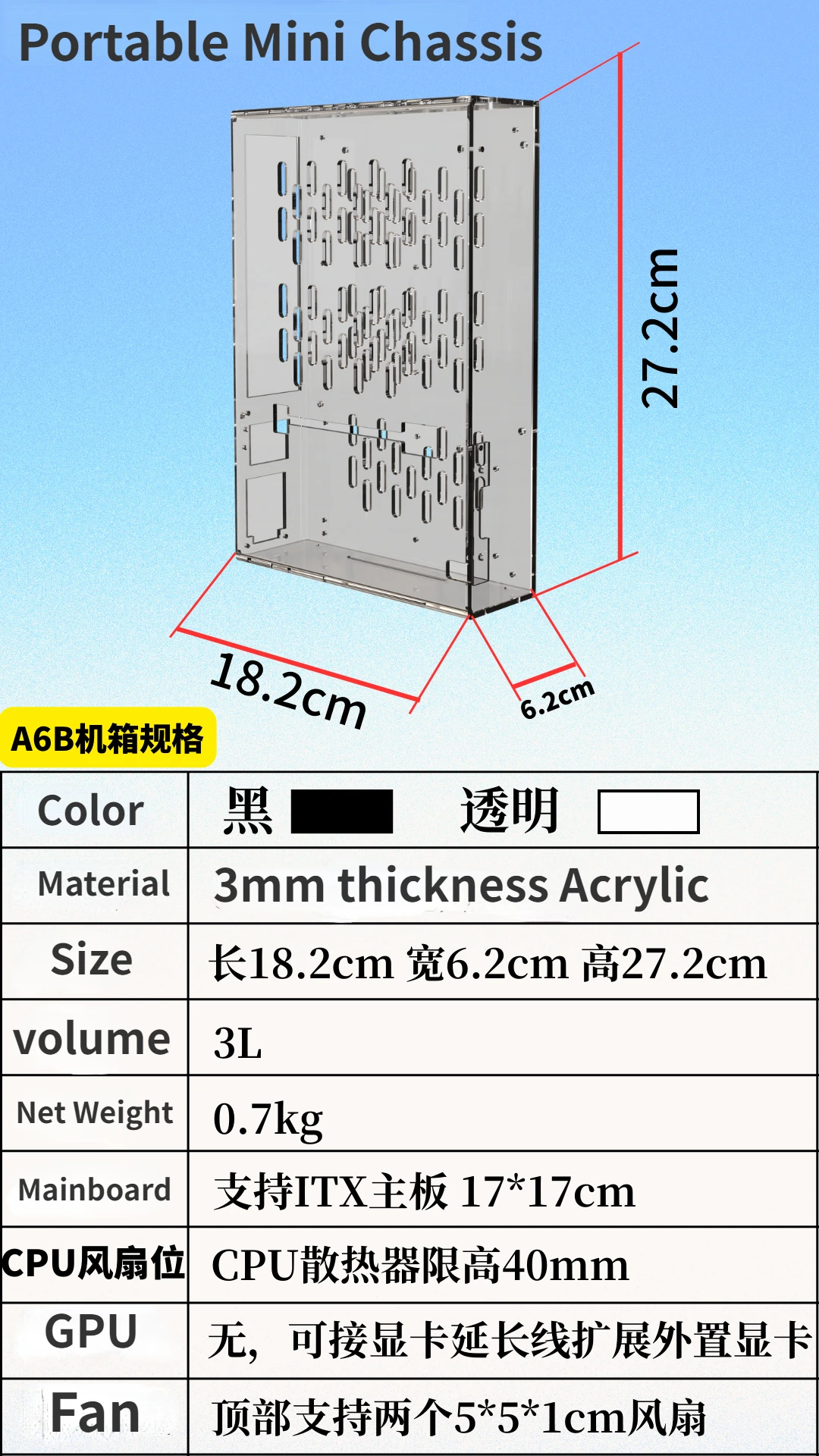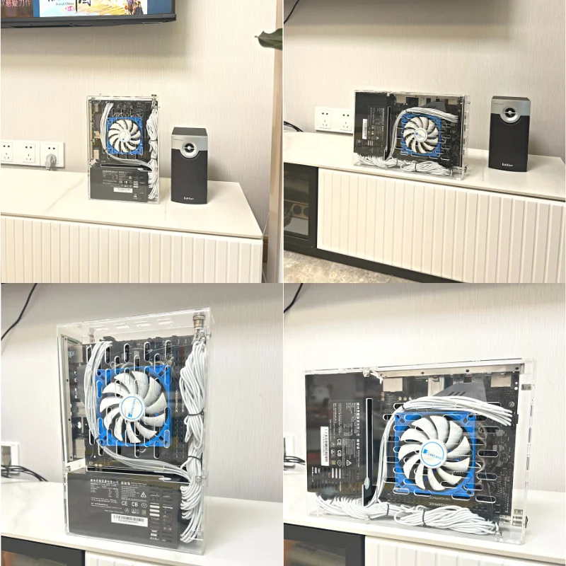 JHH-Link A6B Marco Acrílico para Ordenador ITX, Mini Chasis de PC, Kit de Host de Pantalla Externa de 3L, Carcasa HTPC, Soporte de Alimentación de 1U, Base de Soporte Desnuda DIY