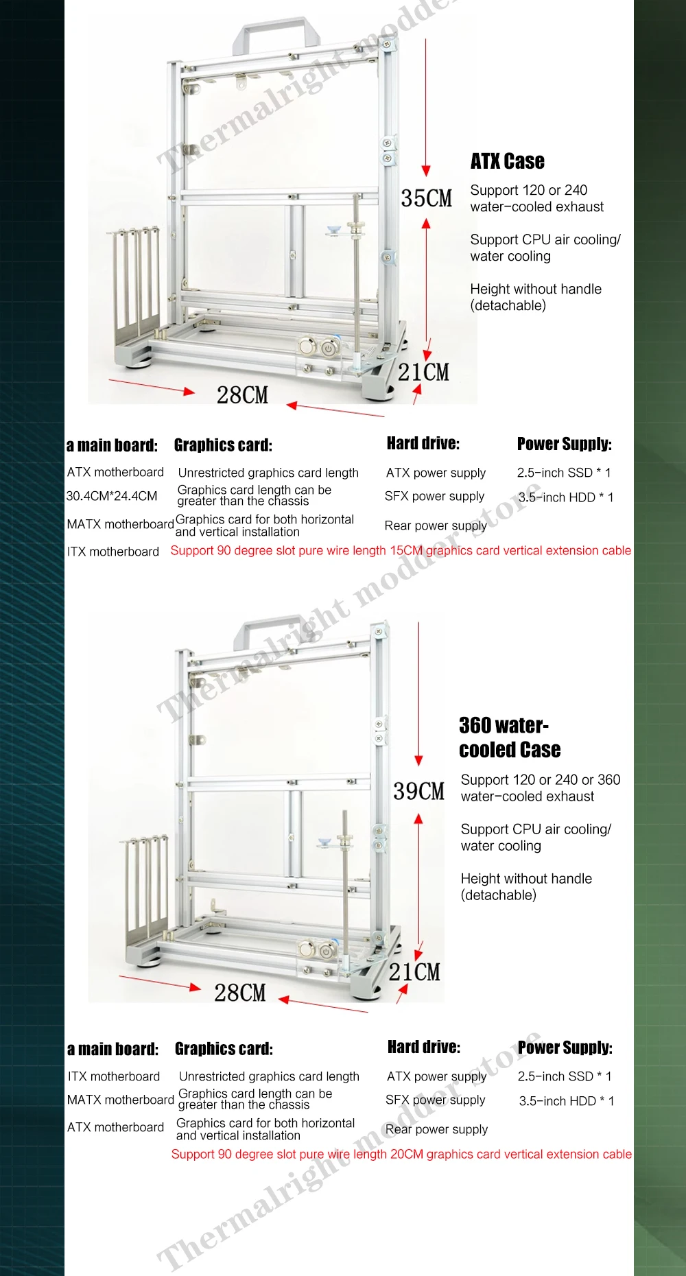4.For 360 water cooler,please select 360 water-cooled pc case frame,