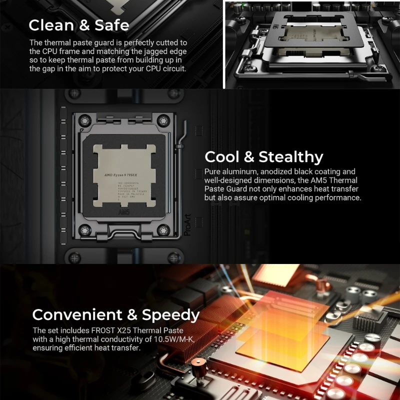 Características:OotdtyEl soporte de montaje de la CPU AM5 TPGS presenta una excelente conductividad térmica, lo que garantiza una transferencia de calor eficiente desde la CPU al sistema de refrigeración. Mejora el rendimiento de refrigeración del sistema y mantiene la temperatura de la CPU dentro de rangos seguros.