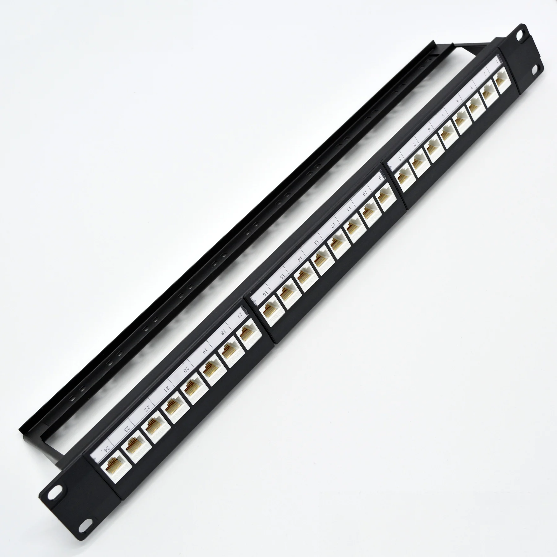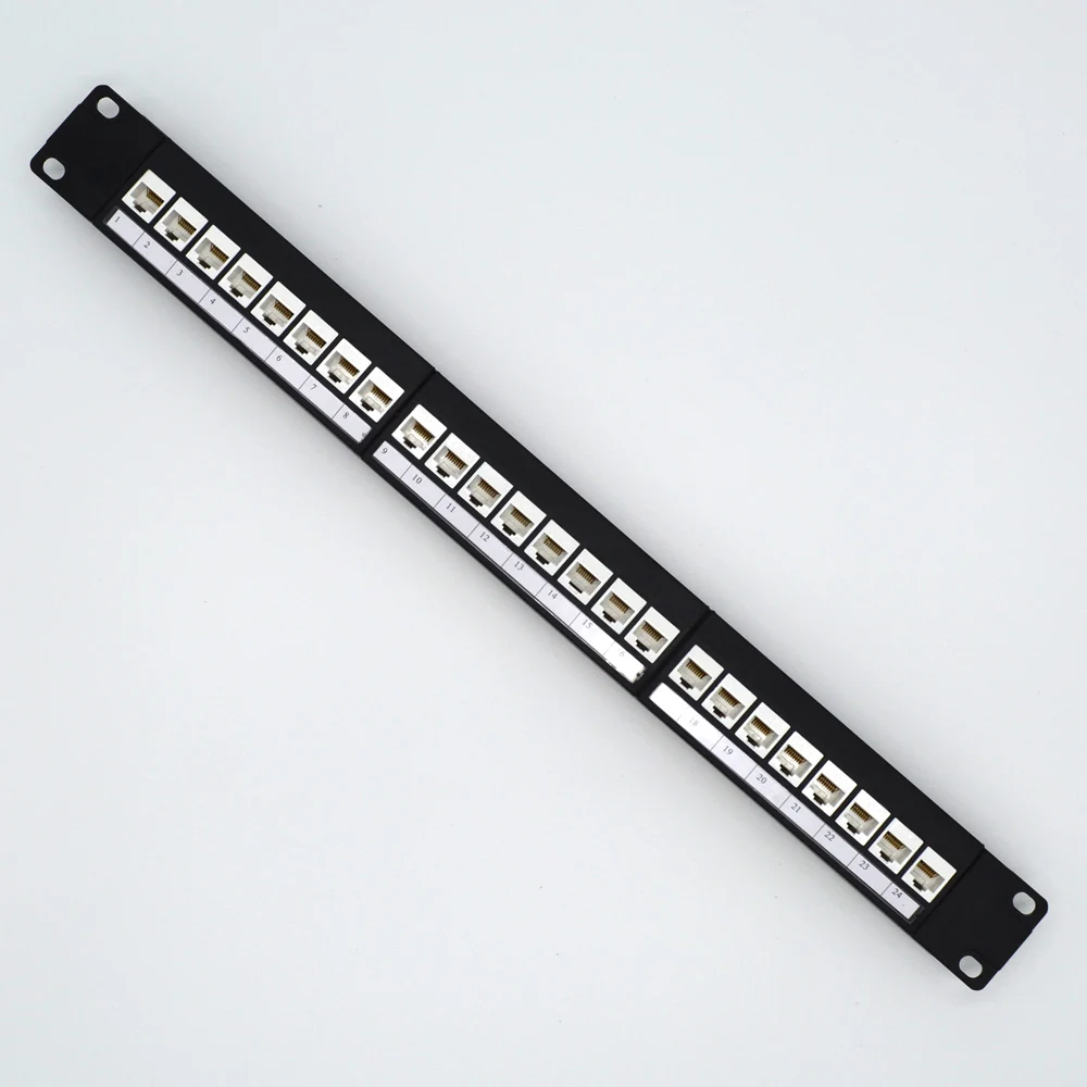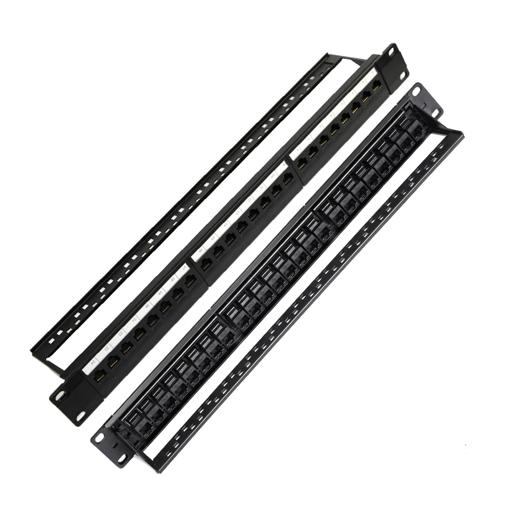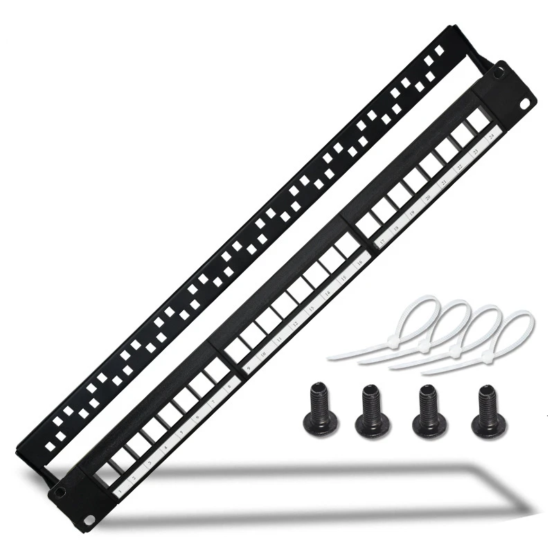 Comprar Marco de distribución de Panel de parche en blanco para RJ11, adaptador de Cable RJ45, módulo de voz 110, CAT5e, 6, 7, conector Keystone, 19 en 1U, 24 puertos