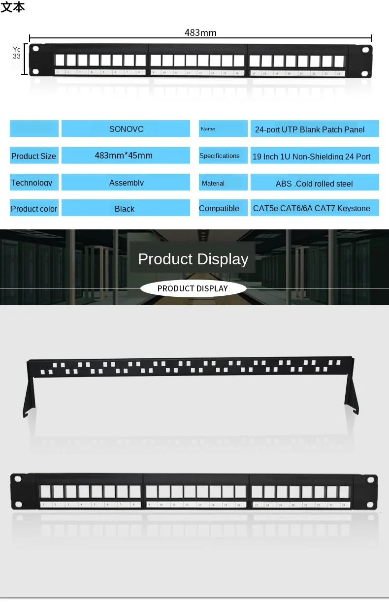 Nombre del producto: 19in 1U Rack 24 Port Panel de conexión en blanco (marco vacío, sin módulo)Modelo: LI-VPP24Especificaciones: estante estándar de 19 pulgadasTamaño: 483mm (L) X44.5 mm (H)Los productos funcionan bien, asequibles, a través de las pruebas, la Red Profesional preferida y el proyecto de voz.