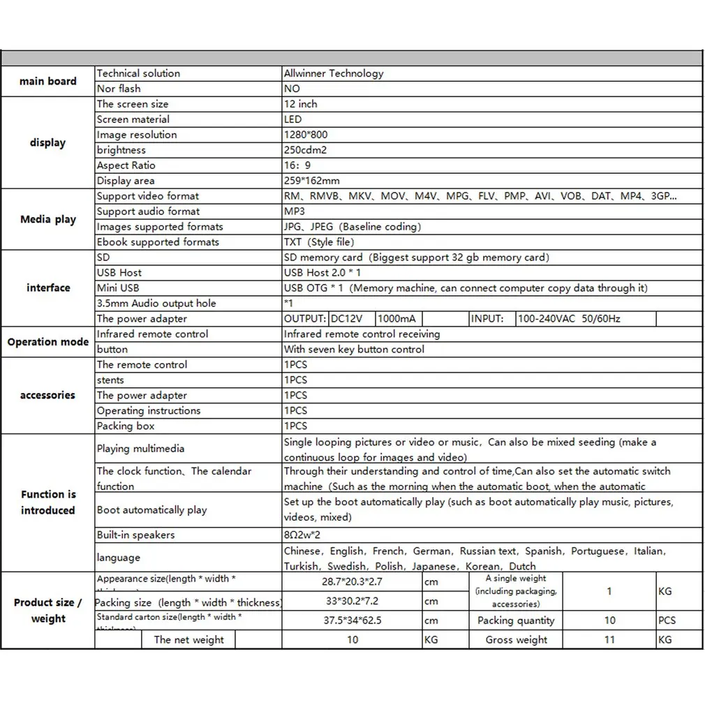 1. EXPERIENCIA DE REPRODUCCIÓN definitiva: La pantalla clara y distintiva de 12 pulgadas le brinda un efecto visual de alta resolución de 1280x800 (16:9) para mostrar fotos y videos. Nuestro marco de fotos digital de 12 pulgadas tiene altavoces estéreo integrados, con mayor calidad de sonido.