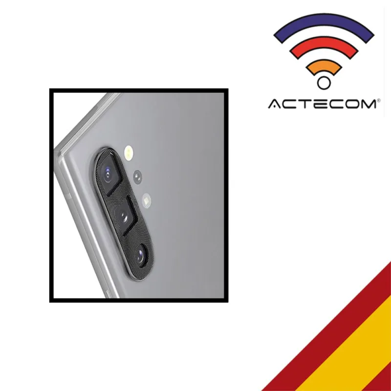 Este marco protector en aluminio con textura, hace que el cristal de la lente quede más bajo que el propio marco quedando así protegido frente a golpes o arañazos. Queda perfectamente adherido y muy disimulado por su diseño.Comprar Marco Protector de Camara para SAMSUNG GALAXY NOTE 10 Negro aluminio, SAMSUNG NOTE 10 plus, SAMSUNG GALAXY NOTE 10 plus