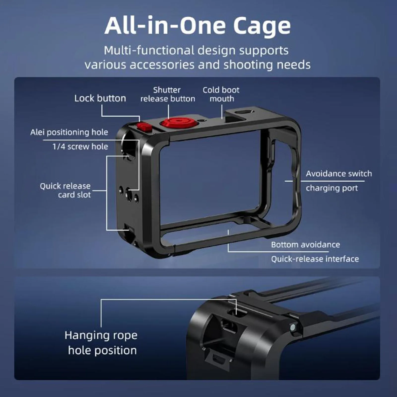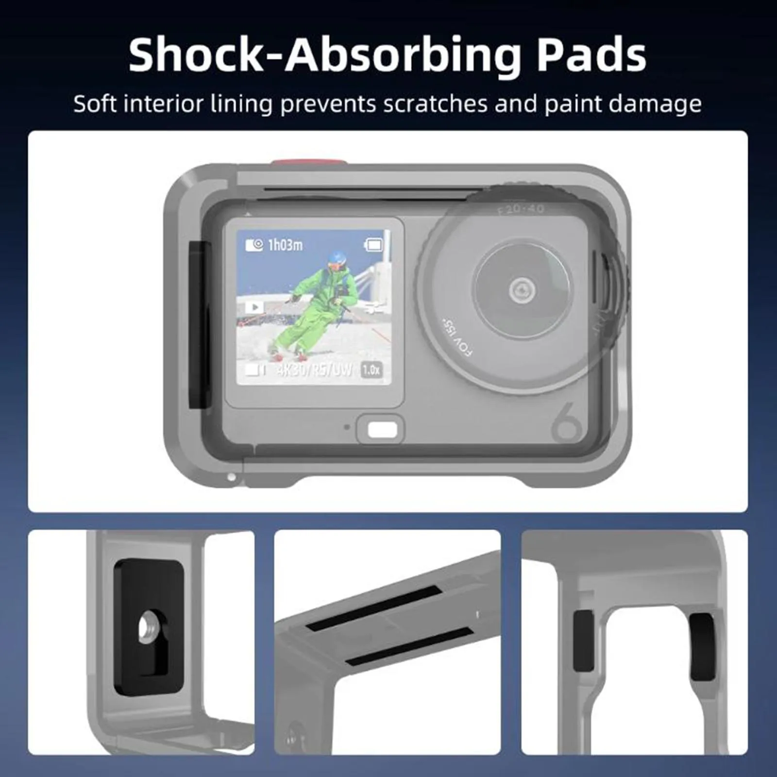 5.Diseñadopara cámaras de acción:Esta jaula protectora está diseñada específicamente para cámaras deportivas, lo que garantiza un ajuste óptimo y resistenteprotección manteniendo todas las funcionalidades y mejorando el rendimiento en entornos llenos de acción.