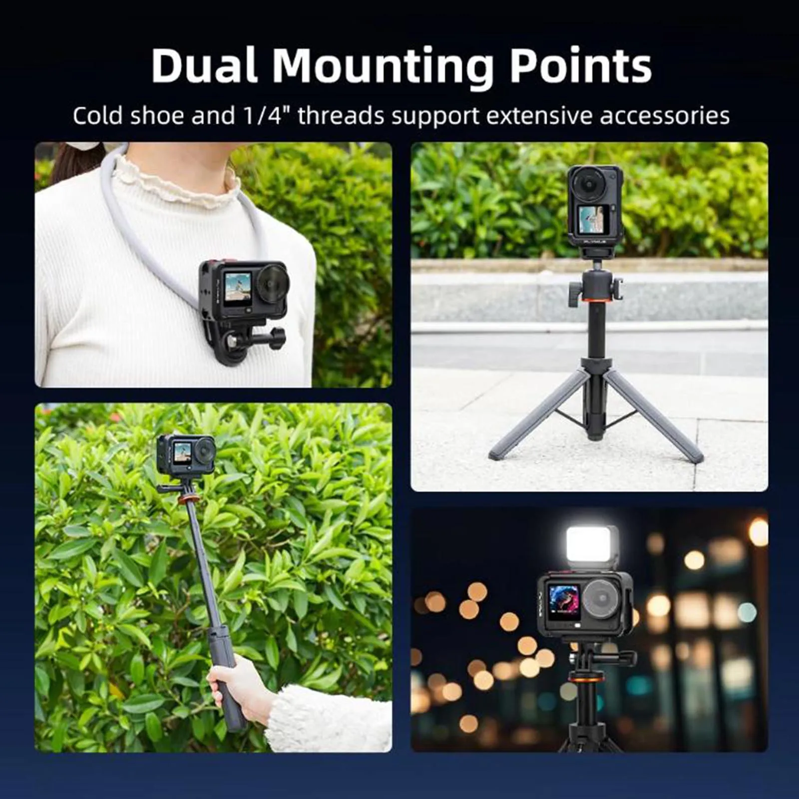 1. Diseño a medida:Diseñada específicamente para DJI Osmo Action 6, esta jaula de metal ofrece un ajuste preciso, brindando a su dispositivo la protección e integración necesarias para el uso diario y las aventuras.La calidad de construcción premium combina durabilidad y compatibilidad perfecta.