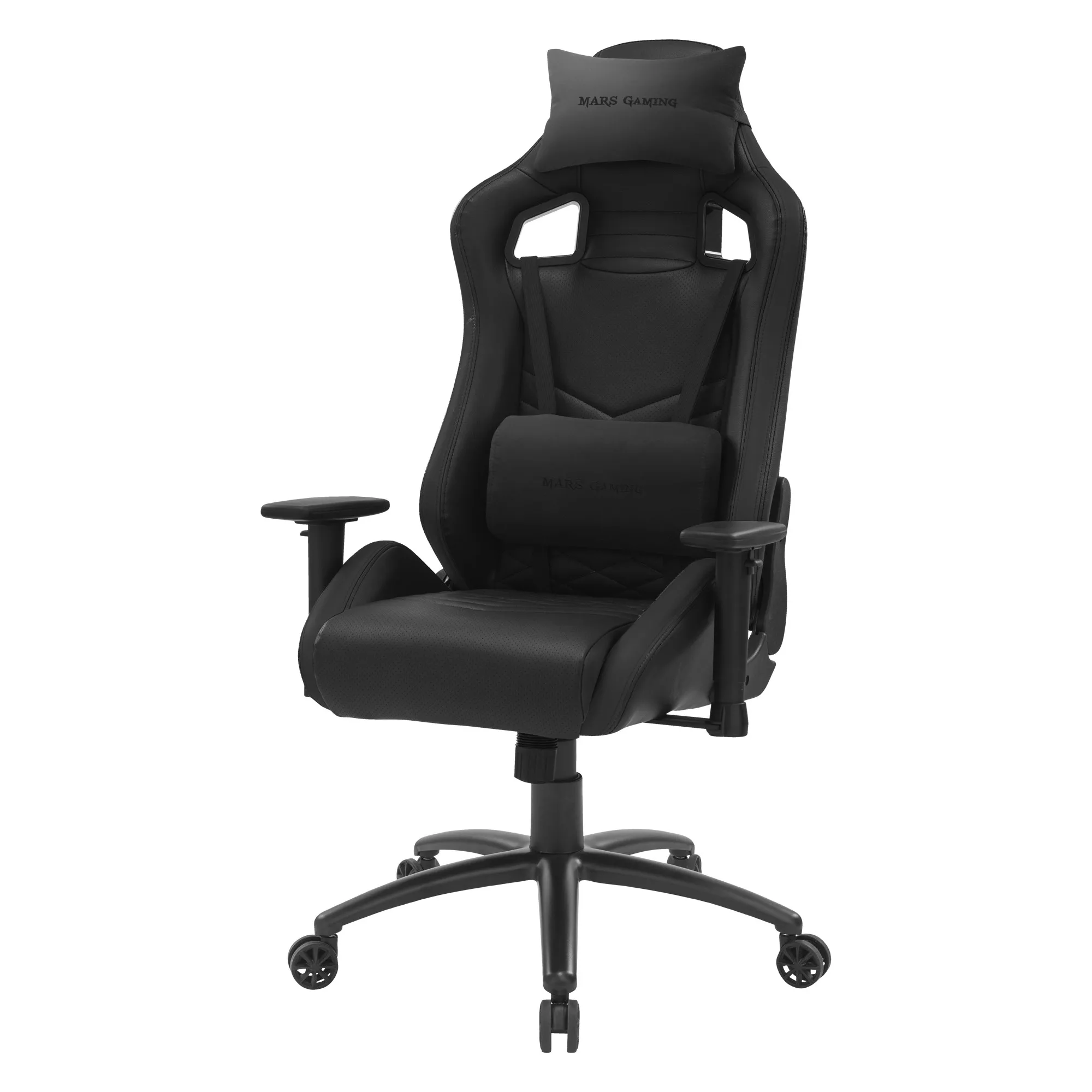 Silla Gaming Premium MGCX NEO La serie de sillas MGCX pone a tu alcance las características de las sillas Gaming Premium. El modelo NEO te ofrece el summum en sillas Gaming: tapicería en cuero PU con tecnología transpirable AIR-TECH PRO, relleno multicapa de triple densidad, ruedas XL de 65 mm, apoyabrazos ajustables ergonómicos, cojines lumbares y cervicales especiales SOFT-TOUCH, base de acero macizo, mecanismo seguro de reclinación hasta 135º y pistón de clase-4. Diseñada para una excelente estabilidad y en cumplimiento de las más estrictas certificaciones de seguridad. Con una amplia selección de 9 colores, para que elijas el que más encaje con tu estilo. Calidad Premium: Nada como sentir el máximo confort gracias al uso de los mejores materiales y la perfecta simbiosis de una fabricación de precisión industrialmente automatizada con la artesanía más detallada. Tecnología transpirable AIR-TECH: Nuestra avanzada tecnología transpirable AIR-TECH PRO es aplicada en las superficies de contacto de las sillas MGCX ofreciendo una transpiración óptima en cualquier situación ambiental. Relleno multicapa y cojines soft-touch: La silla MGCXNEO se adapta perfectamente a ti y tu espalda sin perder la firmeza gracias al diseño multicapa con triple densidad. Además, a través de los exclusivos cojines Premium lumbar y cervical de acabado Soft-Touch, te proporciona una ergonomía perfecta y un confort superior; *El logotipo del producto mostrado en las imágenes podría variar en color y fuente respecto al logo del producto final. Ultra-resistente pistón de clase 4 y ruedas XL: Ajusta la altura a tu medida con el pistón de gas de máxima calidad clase 4, ultra-resistente hasta 150Kg de peso, y deslízate sobre sus ruedas XL de 65mm, diseñadas para ser duraderas y respetuosas con el suelo. Ergonomía Total: Los apoyabrazos de la silla MGCX NEO con diseño rectangular redondeado y de material adaptable ofrecen una perfecta capacidad de ajuste para lograr una óptima ergonomía alineada con la mesa, mientras el mecanismo seguro de reclinación hasta 135º permite relajarse en el ángulo perfecto deseado. Base de acero macizo: Máxima estabilidad y resistencia gracias a su base de acero macizo reforzado. Construido para proporcionar una estabilidad y resistencia perfectas, cada distancia entre ejes de acero no solo está perfectamente equilibrada, sino que también está reforzada gracias a su avanzado diseño estructural.