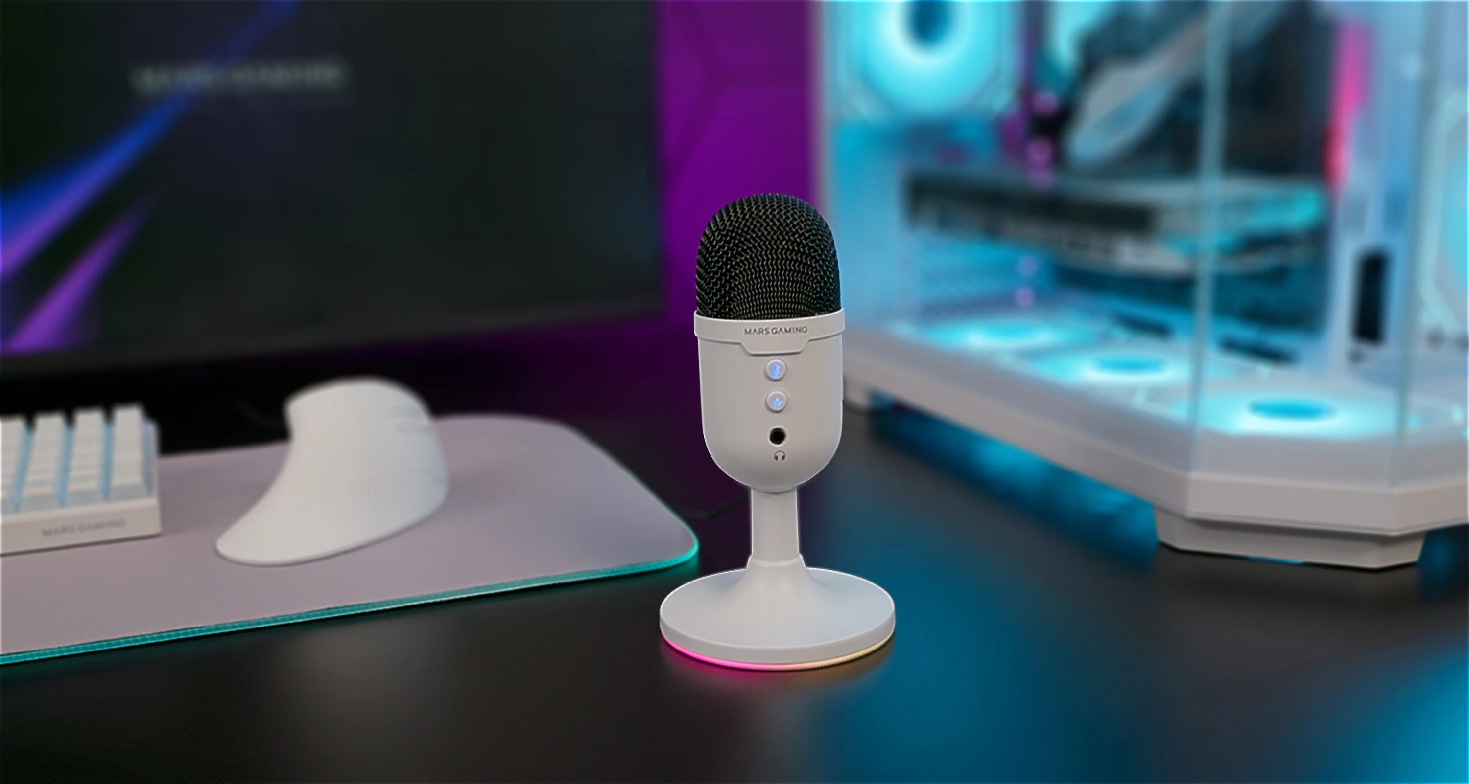 Diseño compacto ARGB. El MMIC-CX combina un diseño minimalista y compacto con un rendimiento profesional, ideal para setups reducidos o escritorios minimalistas. Su tamaño se integra fácilmente en cualquier entorno sin sacrificar funcionalidad. Además, su iluminación ARGB Flow dinámica aporta un toque vibrante, elevando el estilo de tu setup a otro nivel.