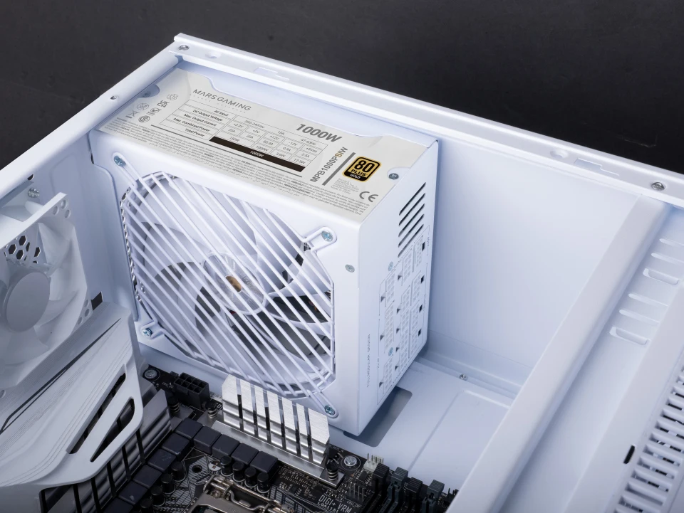 Fuente de Alimentación MPB1000PSI. La fuente de alimentación FULL modular ATX 3.1 MPB1000PSI de 1000W redefine la eficiencia y el rendimiento para los sistemas más exigentes. Con certificación 80Plus Gold, condensadores japoneses Toshin Kyogo 105º y un diseño modular inteligente, garantiza una estabilidad extrema, una gestión energética óptima y una instalación impecable. Su conector nativo 12V 2x6 con soporte para PCIe 5.1 proporciona un suministro de energía eficiente y seguro para las tarjetas gráficas de última generación. Además, incorpora un ventilador SI Extreme Silence de 140mm y el avanzado sistema de refrigeración AI2-RPM, que ajusta dinámicamente la velocidad del ventilador mediante inteligencia artificial y machine learning, asegurando un funcionamiento ultrasilencioso y una disipación térmica de alto nivel.