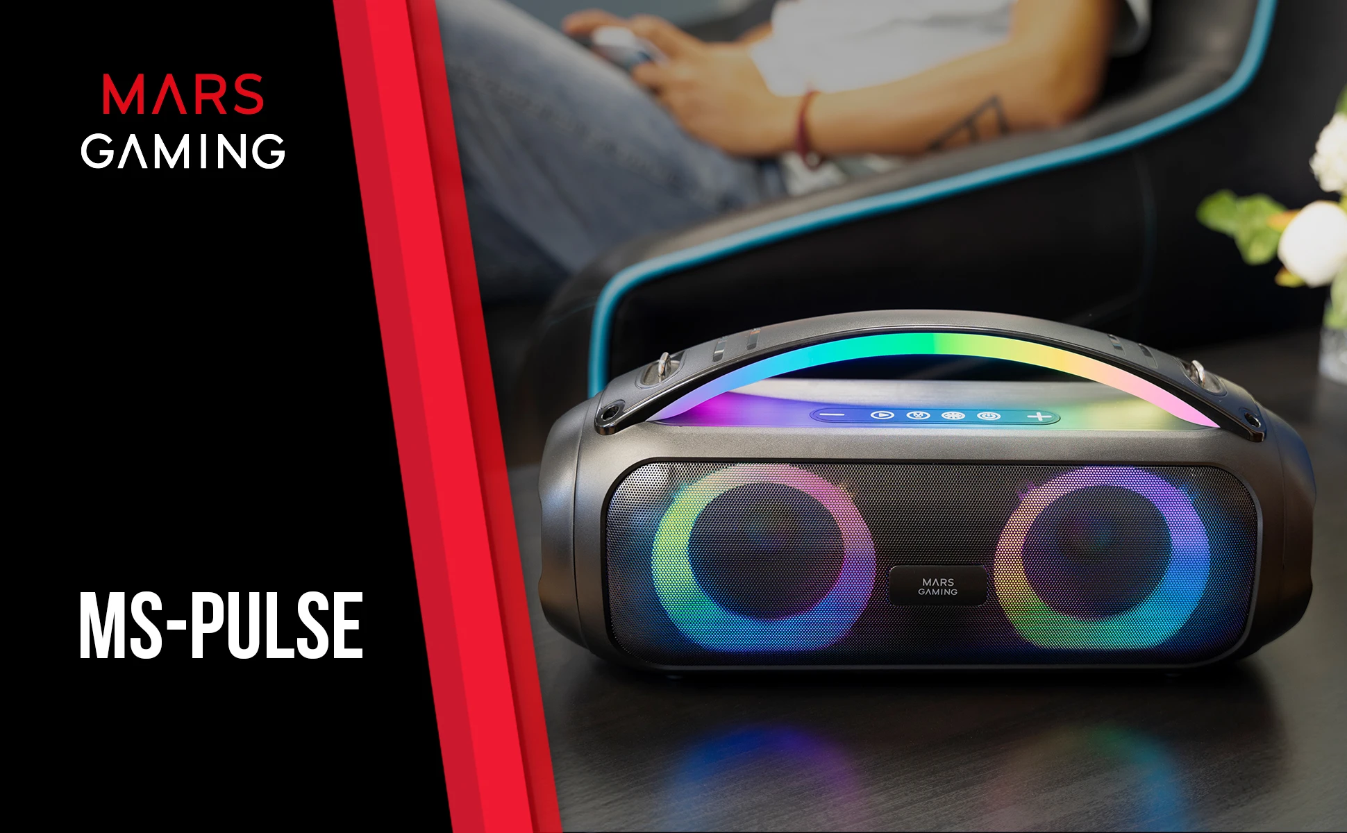 ALTAVOZ BLUETOOTH PORTÁTIL MS-PULSE. Descubre el MS-PULSE, el altavoz Bluetooth portátil Ultra-Bass que transforma cualquier lugar en una fiesta. Con 50W RMS de sonido envolvente y un sistema de iluminación RGB dinámico, está diseñado para llenar grandes espacios con música potente y vibrante. Su conectividad avanzada incluye Bluetooth 5.3, manos libres y opciones de reproducción MicroSD, USB, FM Radio y AUX, ofreciendo una experiencia completa. Además, con su asa y correa desmontable, es perfecto para llevar la fiesta a cualquier parte.