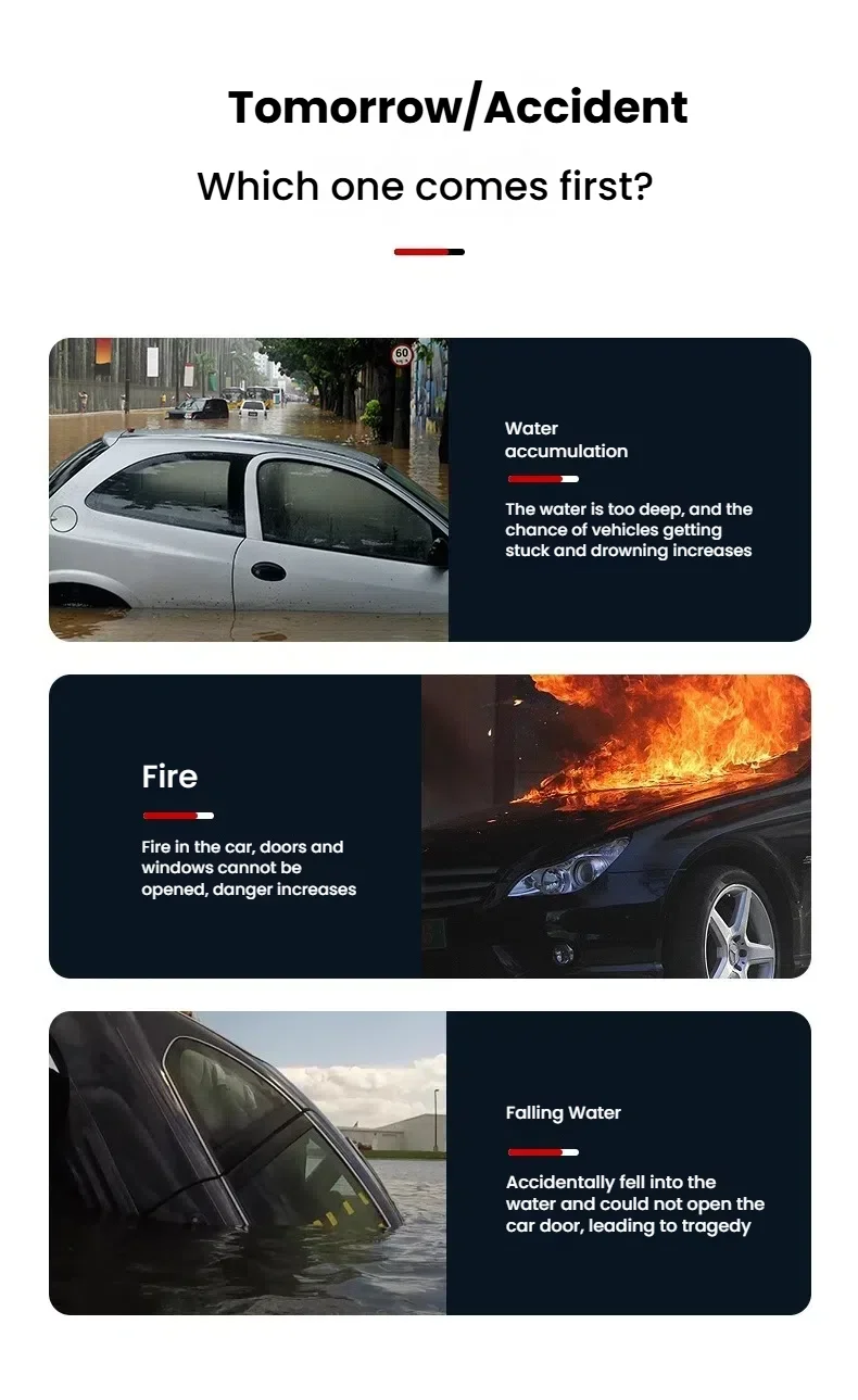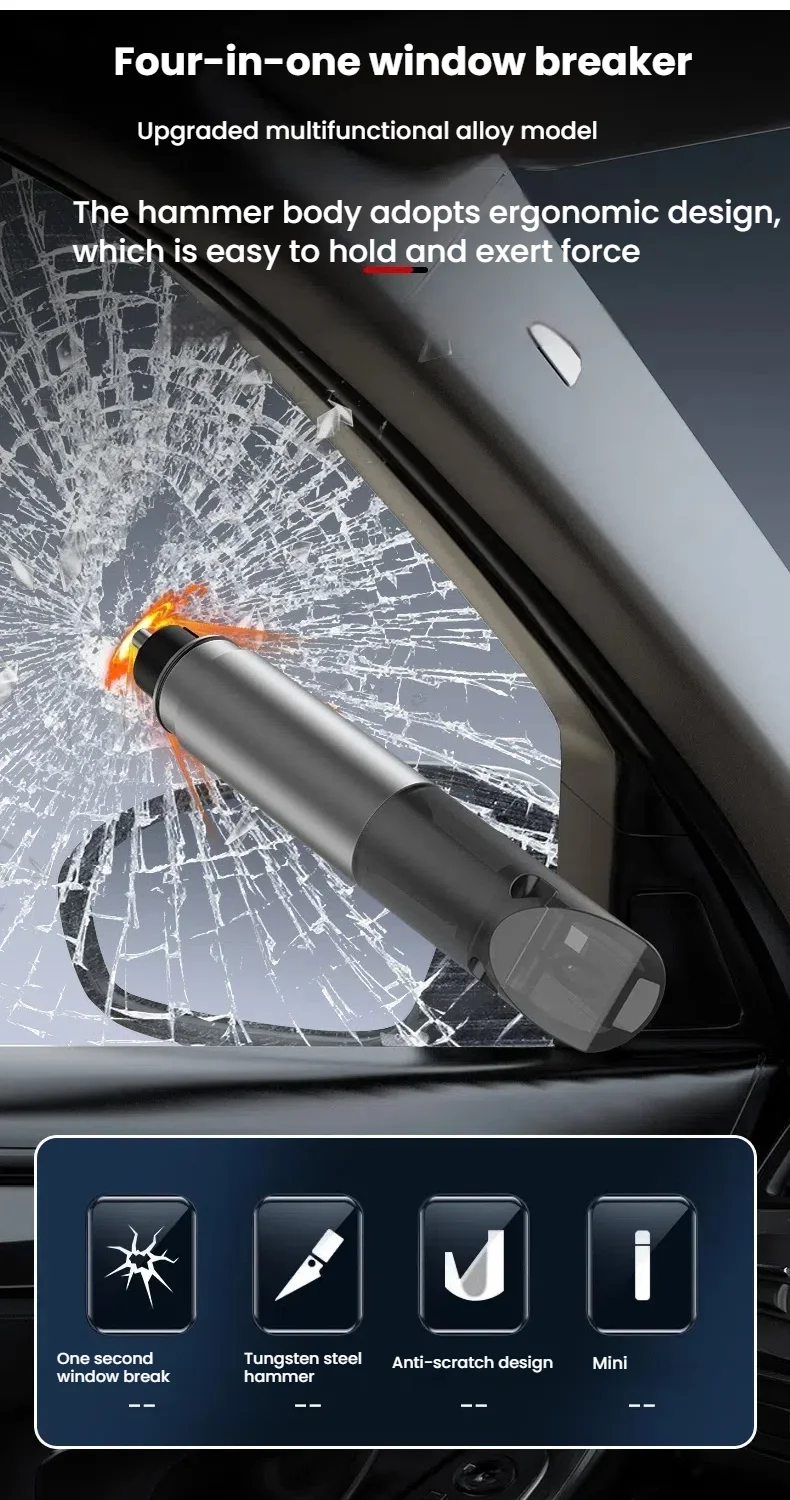 Martillo de seguridad para coche Cuatro en Uno, rompeventanas, cortador de cinturón de seguridad, dispositivo salvavidas en el vehículo, herramienta de Escape rompecristales