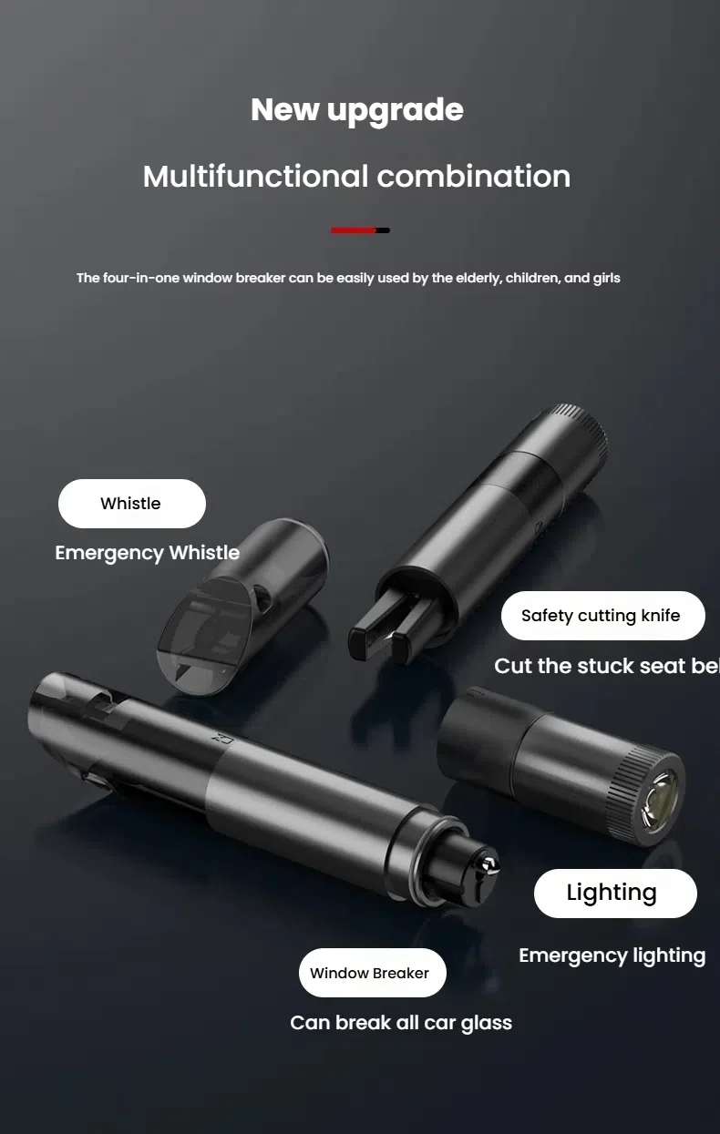 Comprar Martillo de seguridad para coche Cuatro en Uno, rompeventanas, cortador de cinturón de seguridad, dispositivo salvavidas en el vehículo, herramienta de Escape rompecristales