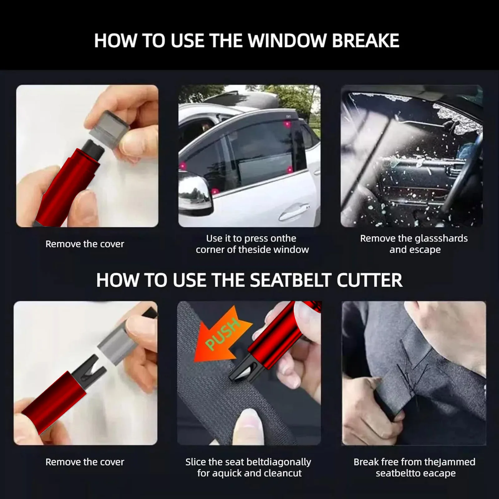 5.Seguridad: La inclusión de un rompecristales y un cortador de cinturón de seguridad significa que puede abordar dos de los obstáculos más comunes para escapar en una emergencia.