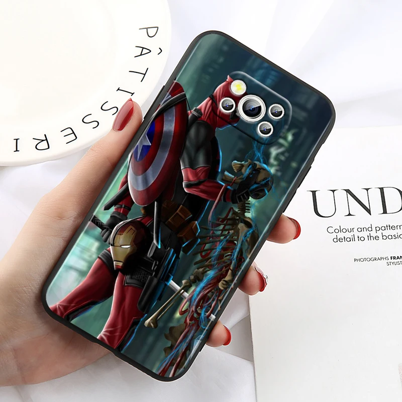 Marvel Avenger Deadpool para Xiaomi Poco X6 X5 X4 X3 F4 F3 NFC M6 M5 M4 GT S Pro 4G 5G C65 funda de teléfono suave negra