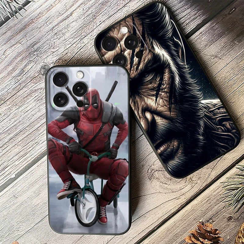 Marvel Deadpool Lobezno película para iPhone 15 14 13 12 11 XS XR X 8 7 SE Pro Max Plus Mini funda negra para teléfono