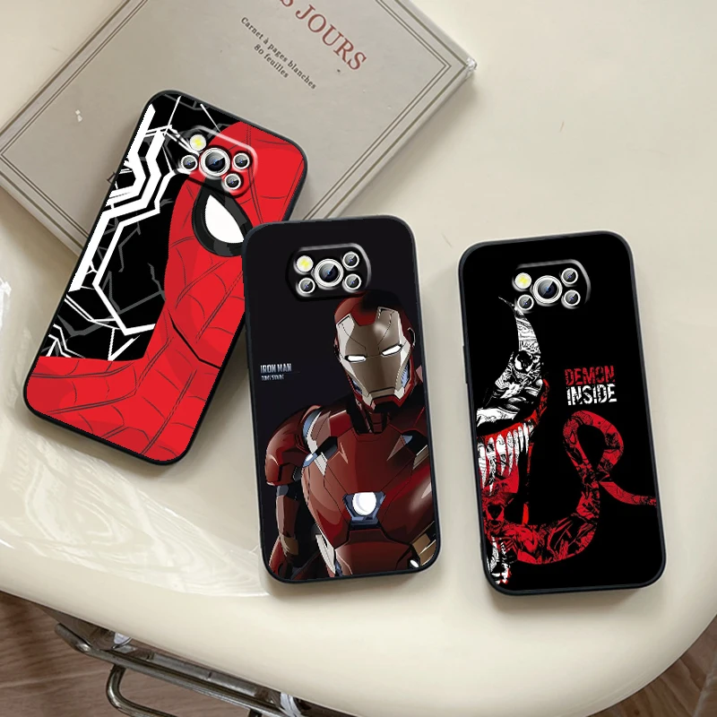 Marvel-funda negra para teléfono móvil, carcasa de Iron Man Hero Venom para Xiaomi Mi Poco F5 F4 F3 X6 X5 X4 X3 M6 M5S M4 M3 C65 Pro GT NFC 5G