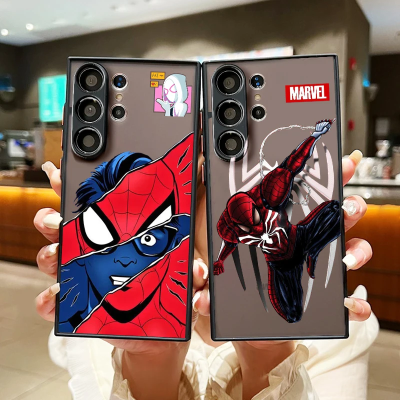 Marvel Hero Spider Man translúcido esmerilado para Samsung Galaxy S24 S23 S22 S21 S20 FE S10 S9 S8 Plus Ultra Pro 5G Back