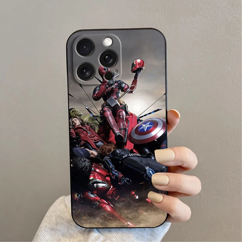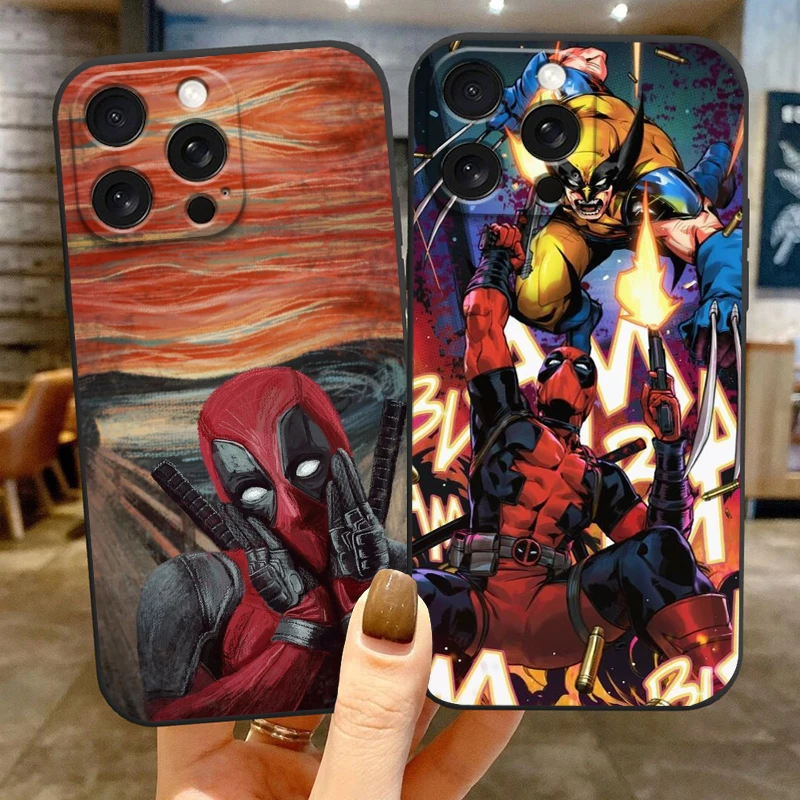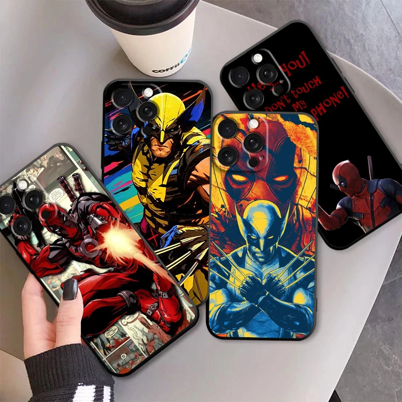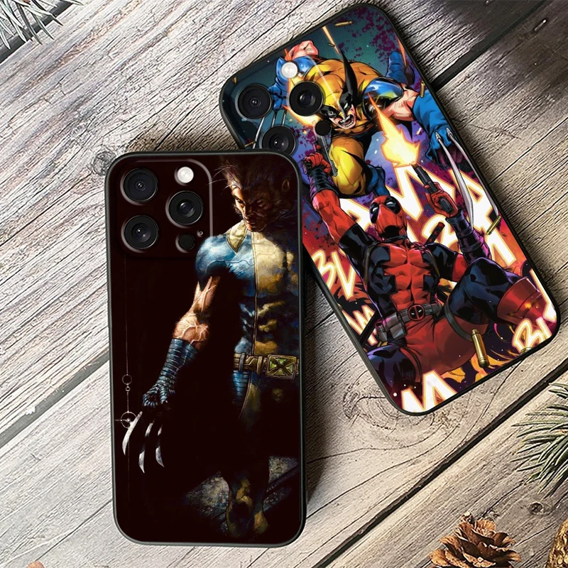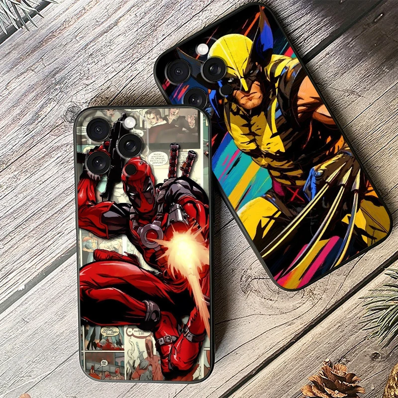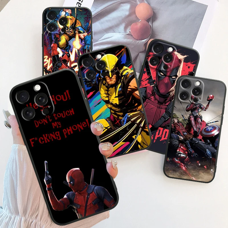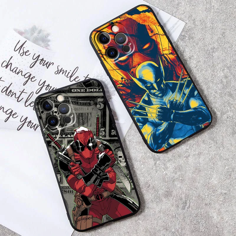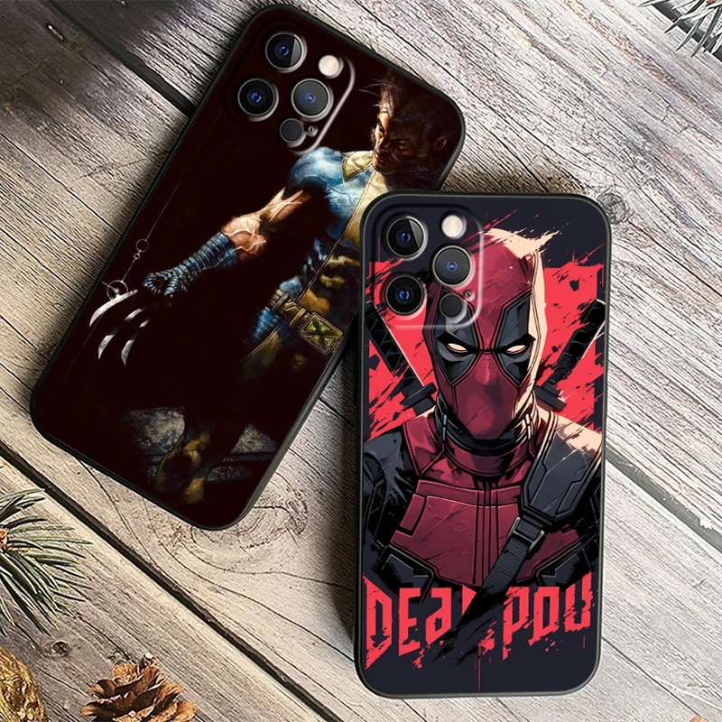 Comprar Marvel Lobezno Deadpool funda trasera negra para iPhone 15 14 13 12 11 XS XR X 8 7 SE Pro Max Plus Mini