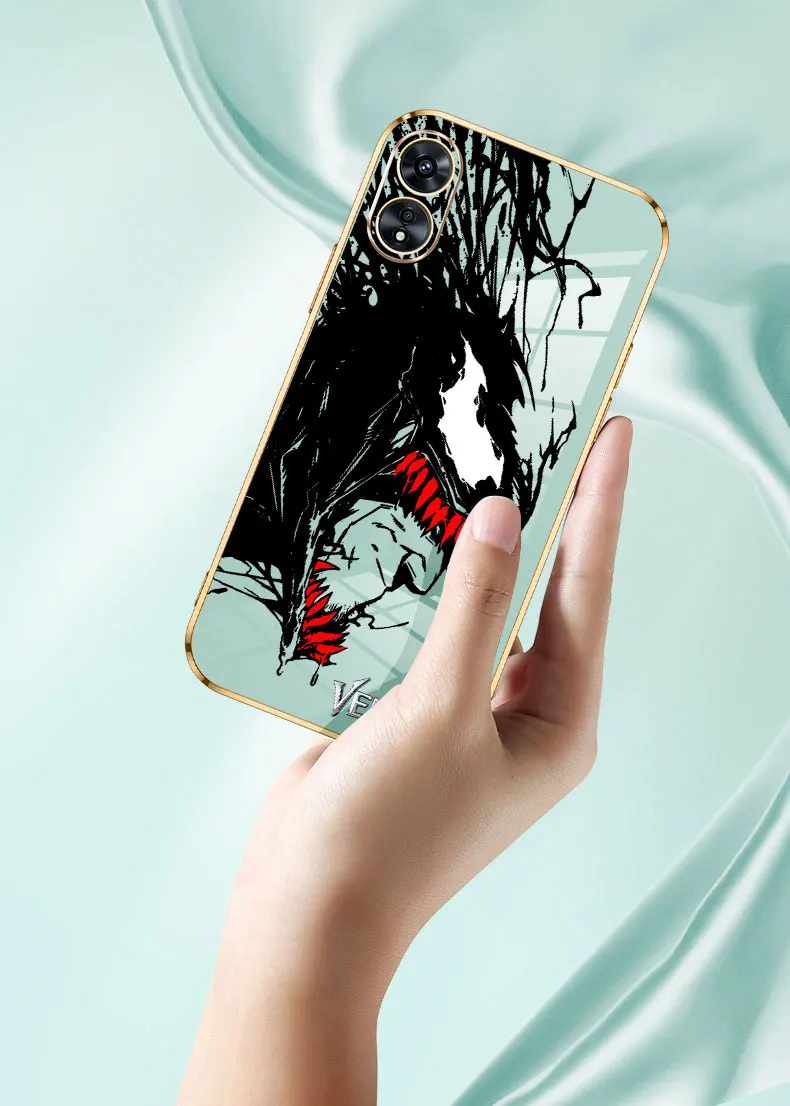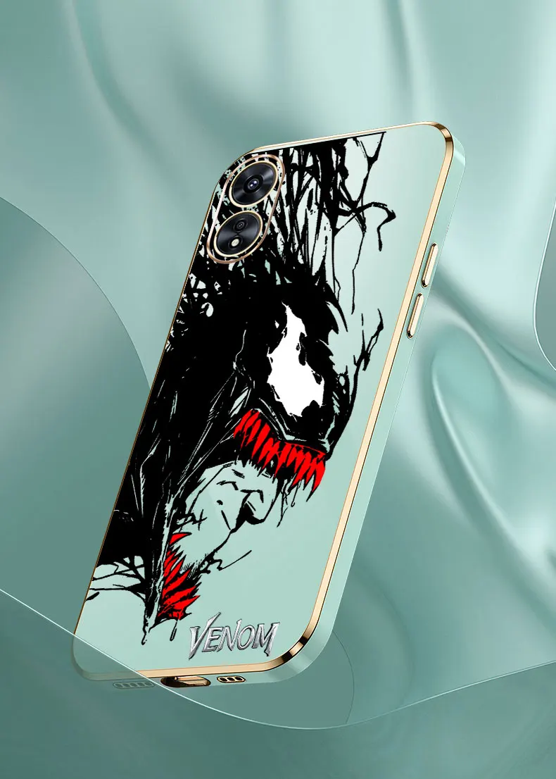 Arte cómico de Marvel VenomFunda de teléfono para OPPO A98 A94 A93 A92S A92 A91 A83 A78 A76 A74 A73 A72 A71 A59 A58 A57 A55 A54 A53 A39 A38 A37 A31 4G 5G, funda de lujo con borde dorado