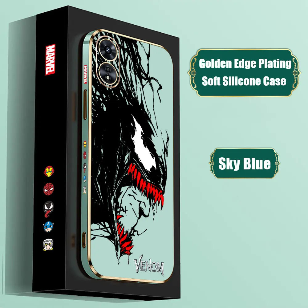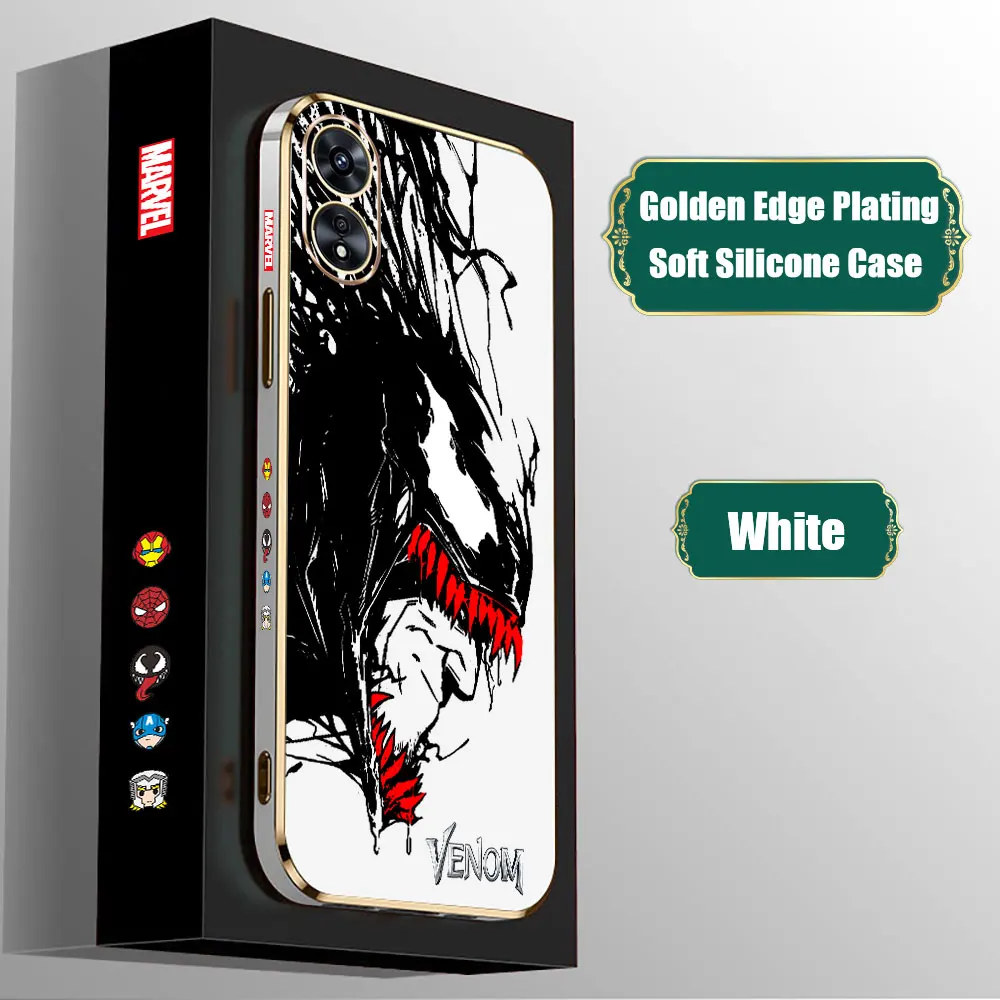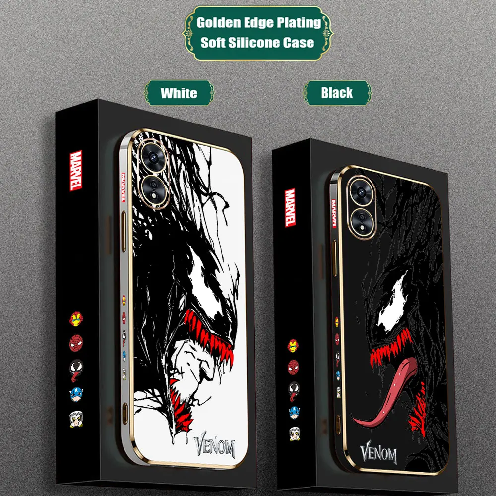 Arte cómico de Marvel VenomFunda de teléfono para OPPO A98 A94 A93 A92S A92 A91 A83 A78 A76 A74 A73 A72 A71 A59 A58 A57 A55 A54 A53 A39 A38 A37 A31 4G 5G, funda de lujo con borde dorado