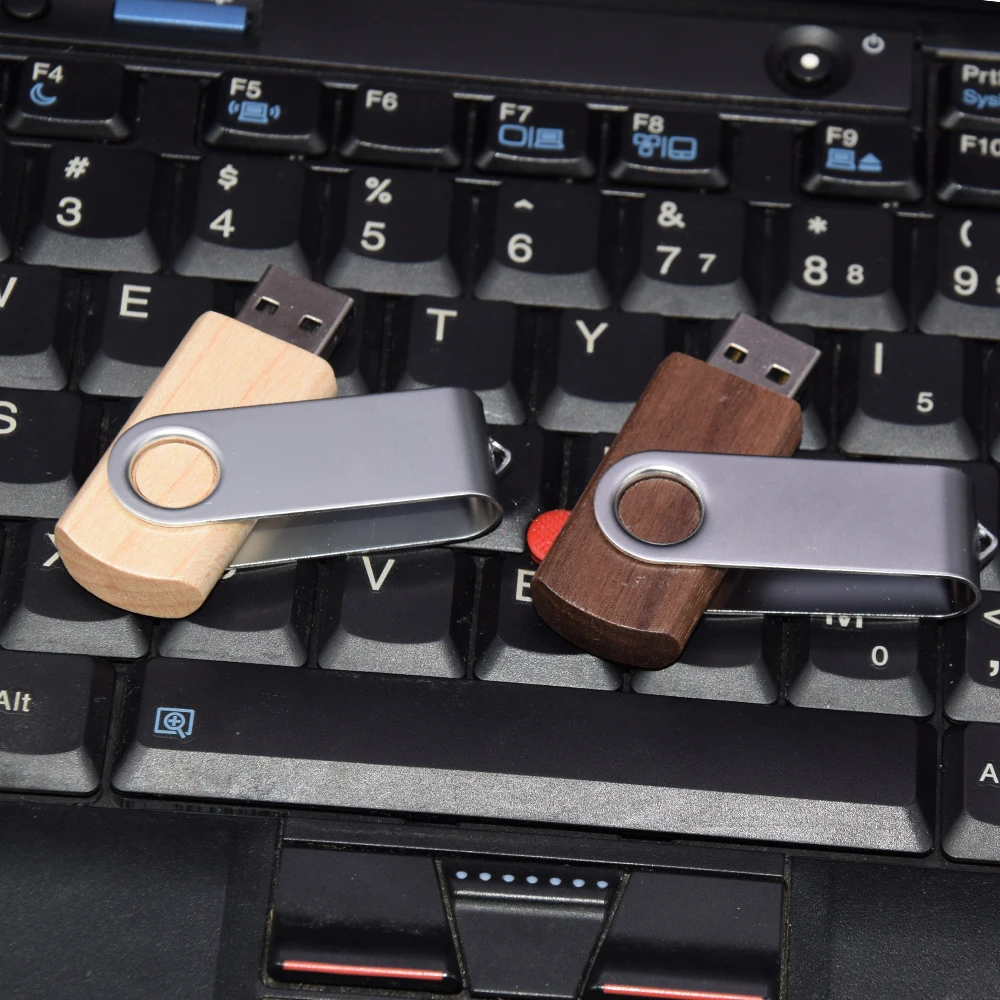 Comprar Más de 10 Uds logotipo gratis de madera usb, Usb 2 0 lápiz de memoria 1 GB 2GB 4GB 8GB 16G 32GB Pendrive giratorio usb memoria usb cle Usb