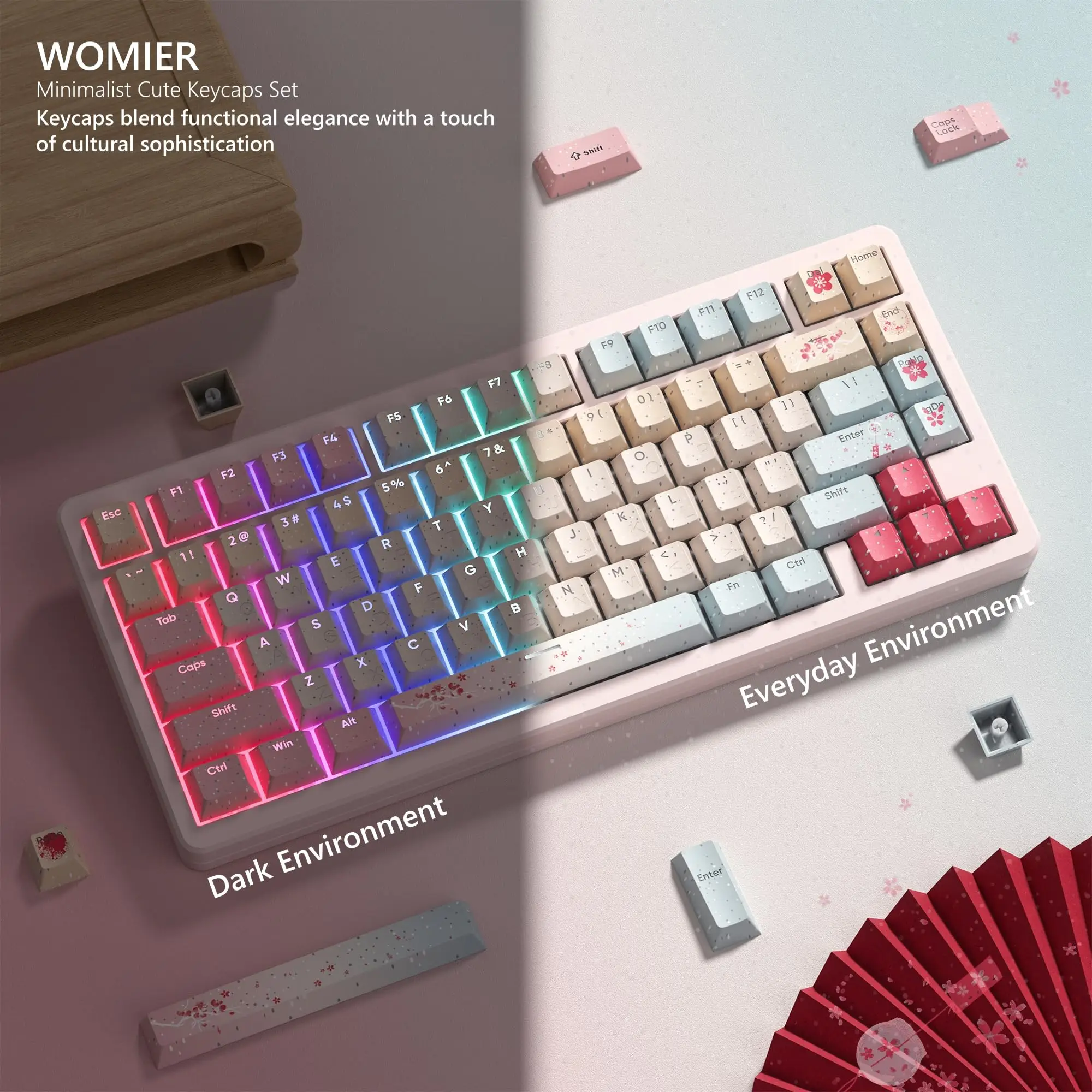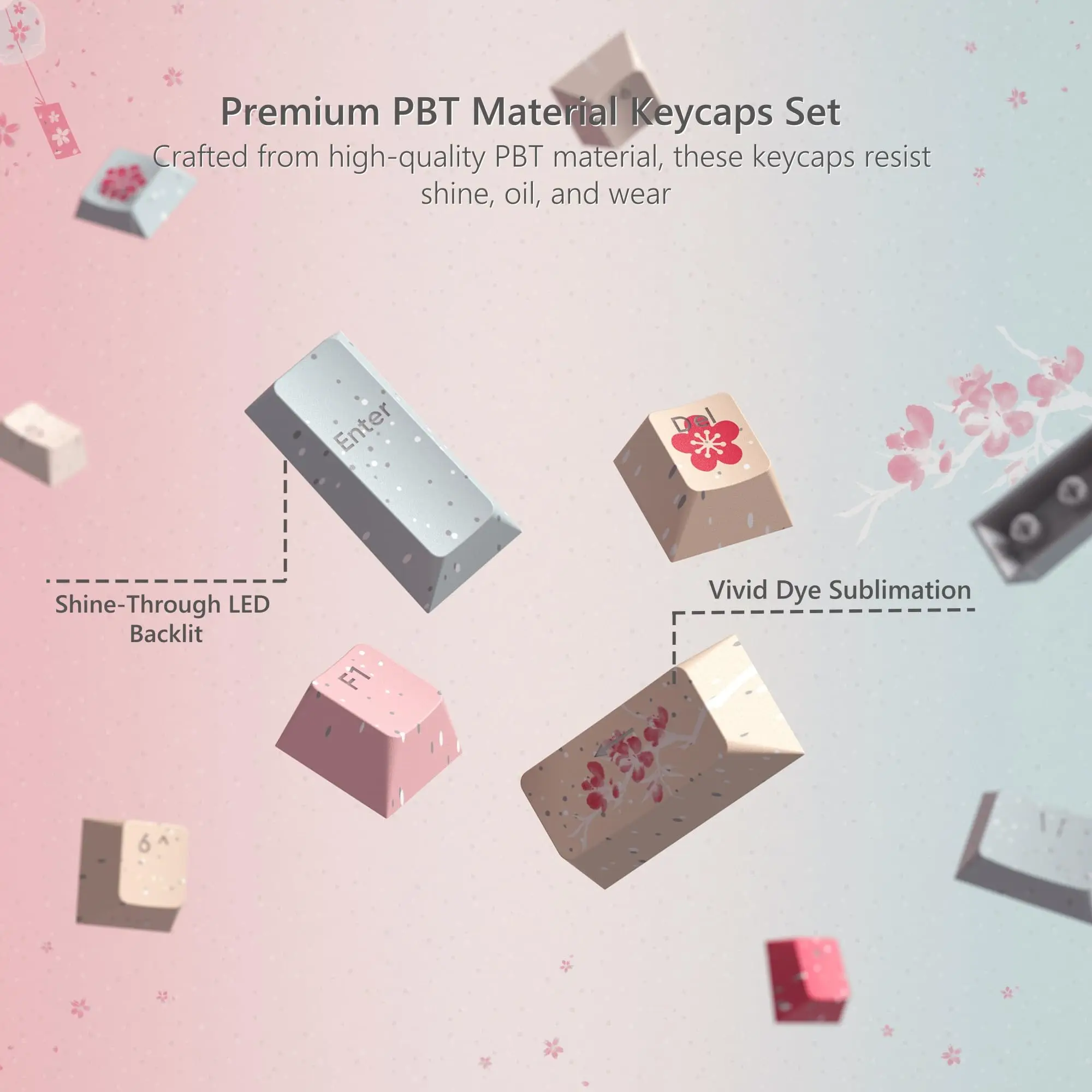 【Diseño único 3 en uno】 Como primera tecla que combina sublimación térmica y Double Shot Craft en uno, no solo conserva el patrón exquisito, sino que también transmite luz.Letras laterales para evitar la luz directa hacia arriba.Esta es una solución perfecta con muchas ventajas.Refleja la frescura del teclado, no interfiera con su vista.