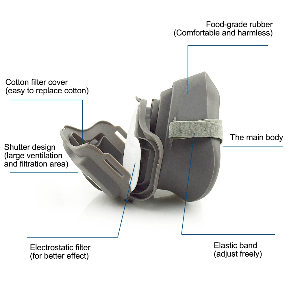 Características: máscara se puede limpiar, filtro de algodón se puede reemplazar