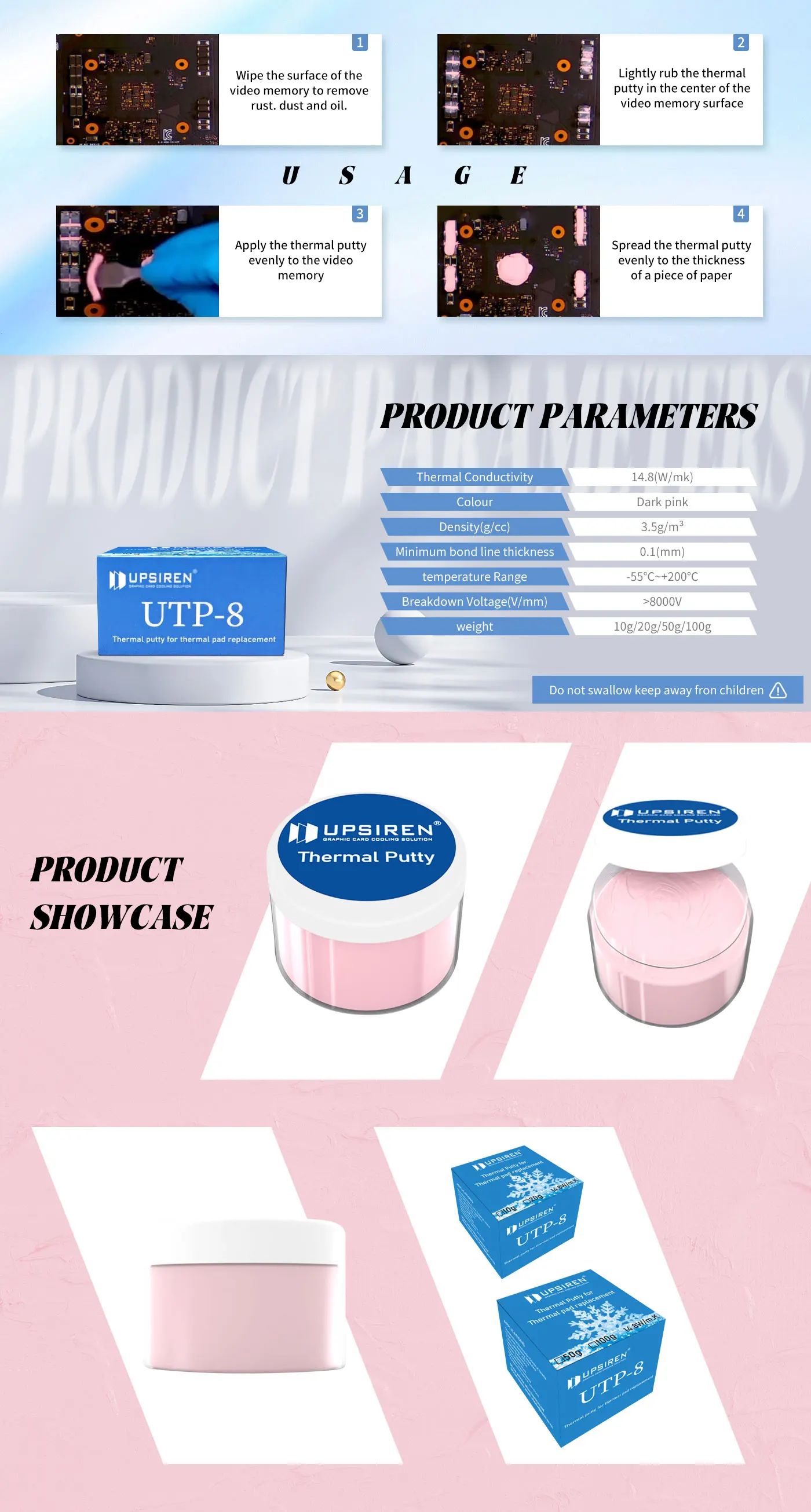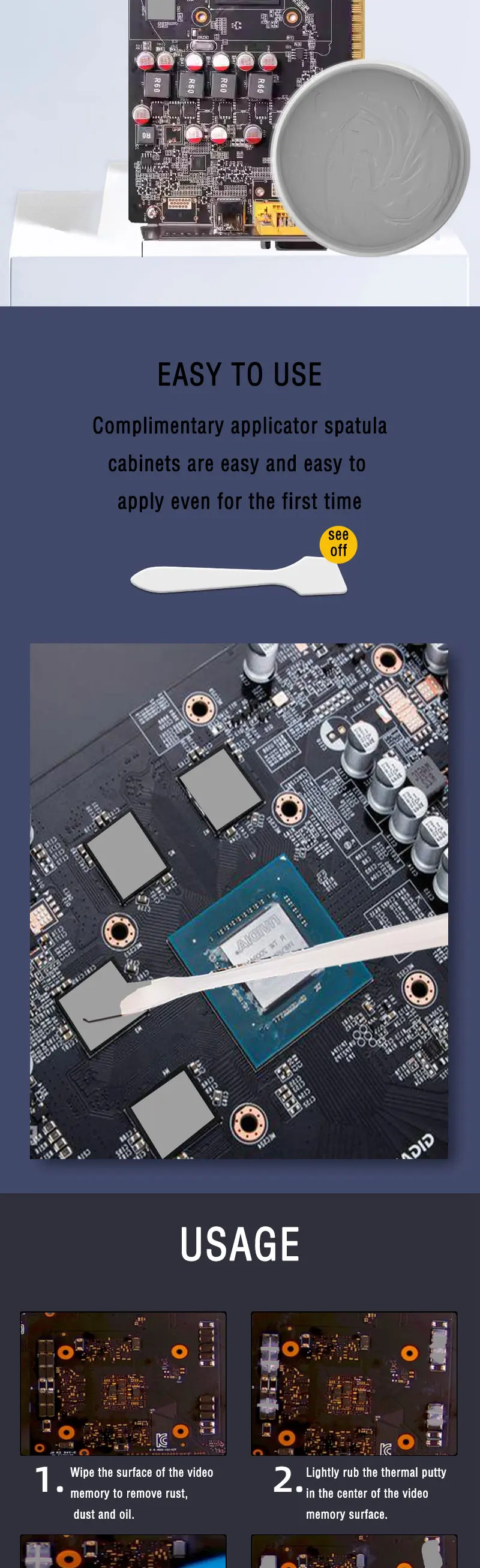 2.16,8 W/MK La masilla térmica ilimitada puede reemplazar las almohadillas térmicas suaves que se utilizan en computadoras (hasta 3 mm de espesor)