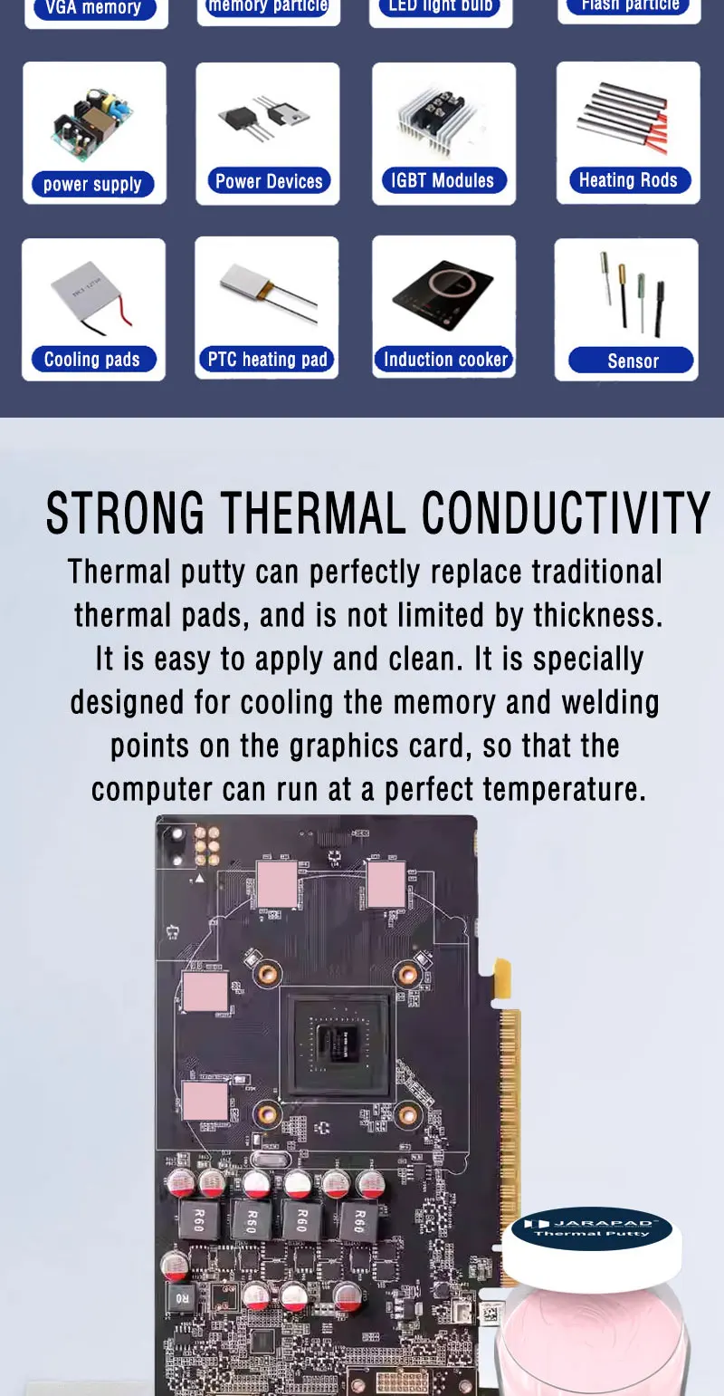 Masilla térmica JARAPAD EXTREME de 14,8 W para procesador VGA GPU IC, enfriamiento rápido, conductor no eléctrico, no curativo y sin sangrado