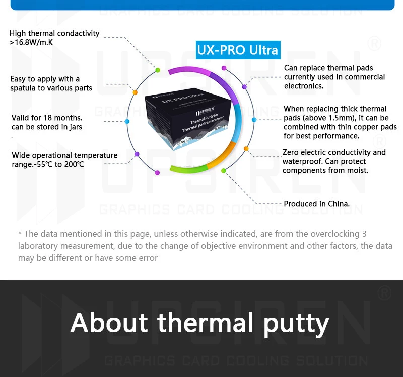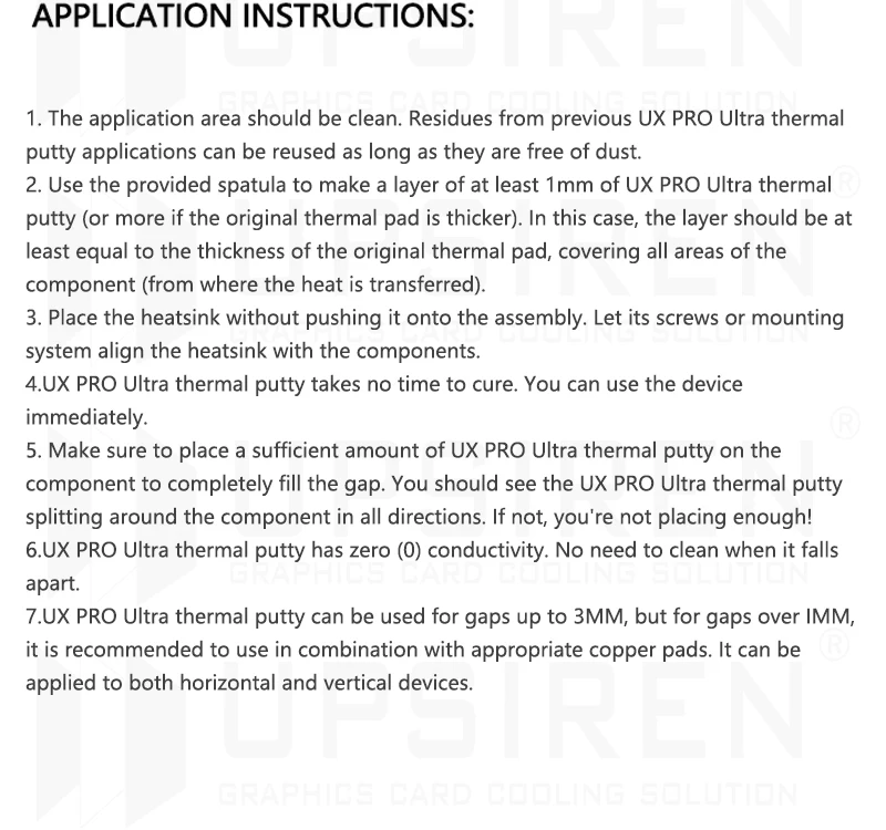 1.UX PRO Ultra termal masilla es una pasta térmica pegajosa/goma de alta calidad diseñada para usarse en chips de memoria y GPU de varias computadoras.