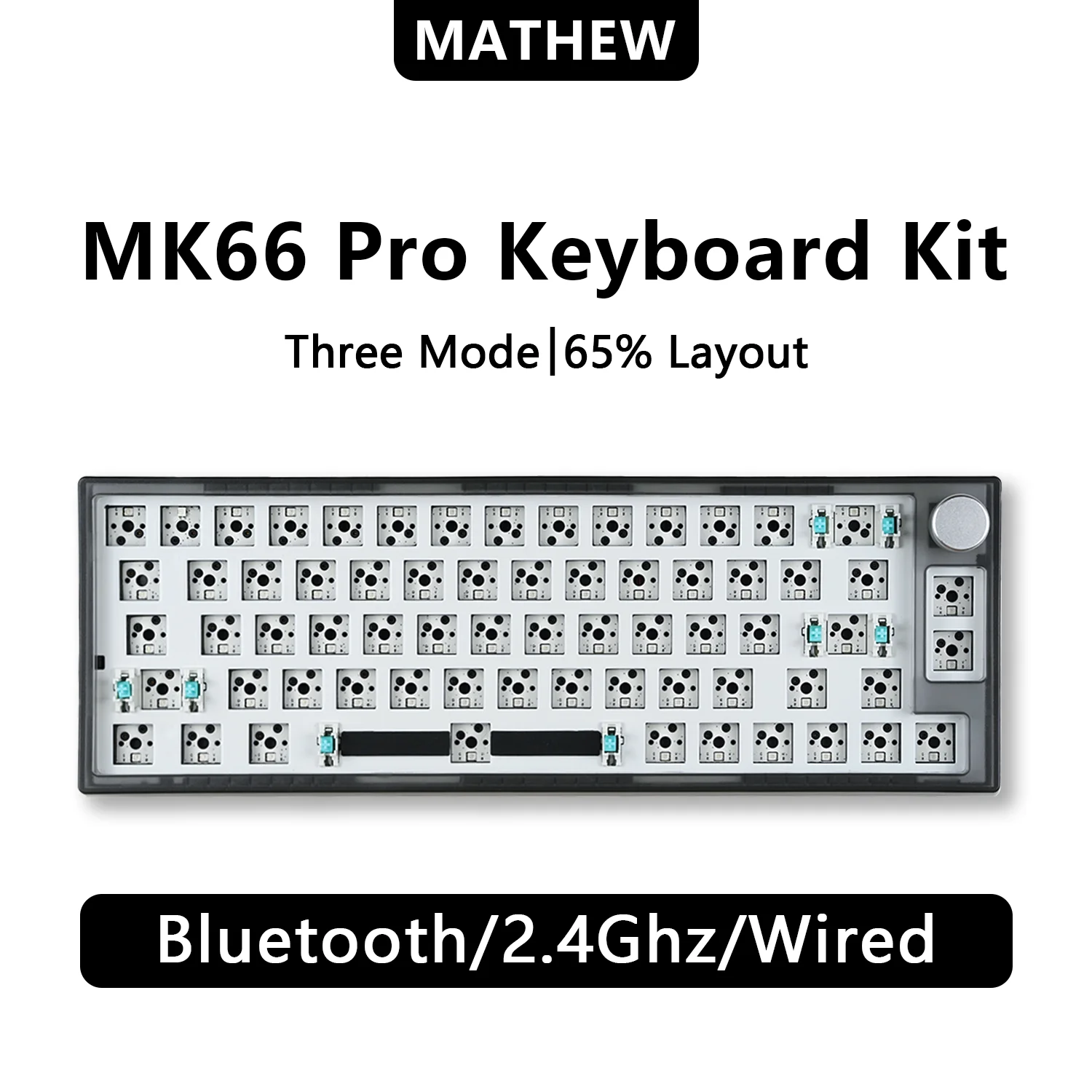 Comprar MATHEW MK66 Pro Kit de teclado mecánico con junta para juegos 65 por ciento intercambiable en caliente puñalado lubricado de 3 modos, luz RGB, LED orientado al sur
