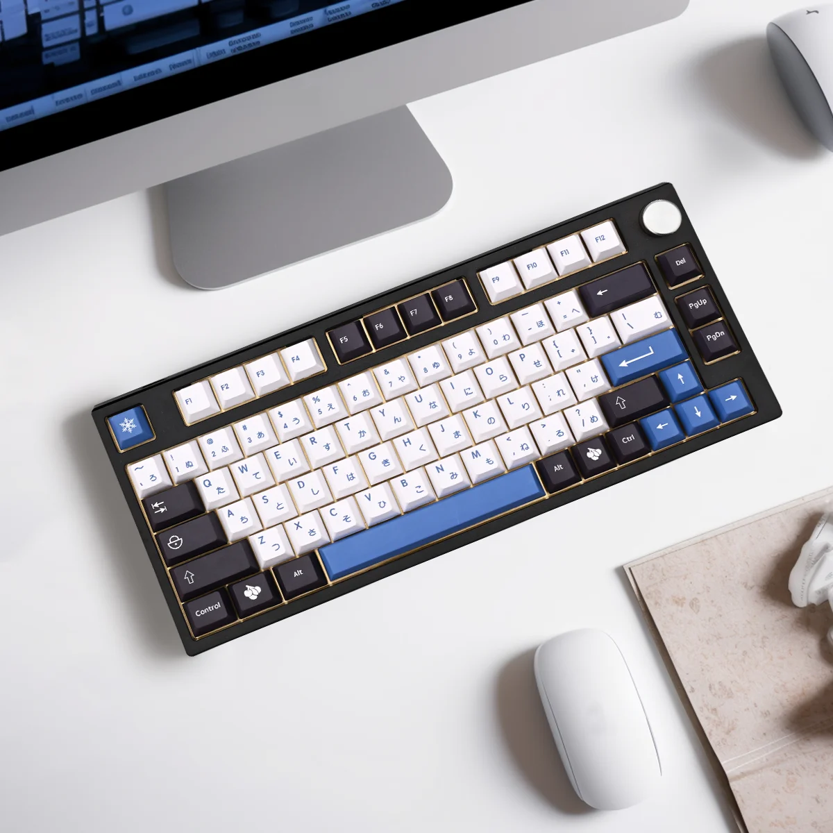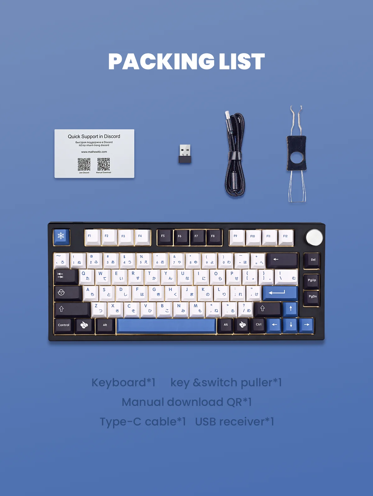 Comprar MATHEW TECH MK80 Max teclado mecánico ARCTIC cirílico, intercambiable en caliente inalámbrico de 3 modos, diseño 75%, interruptor de amarillo lechoso Gateron