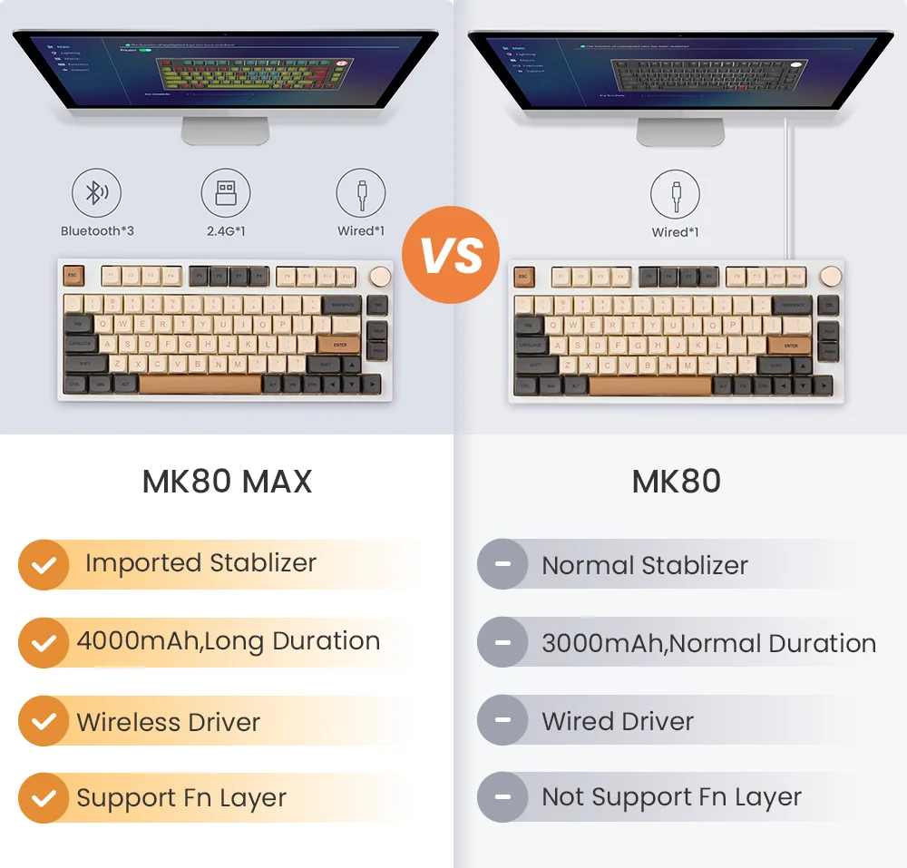 We Upgrading Stablizer in MK80 Max, that makes typing sound better then MK80.