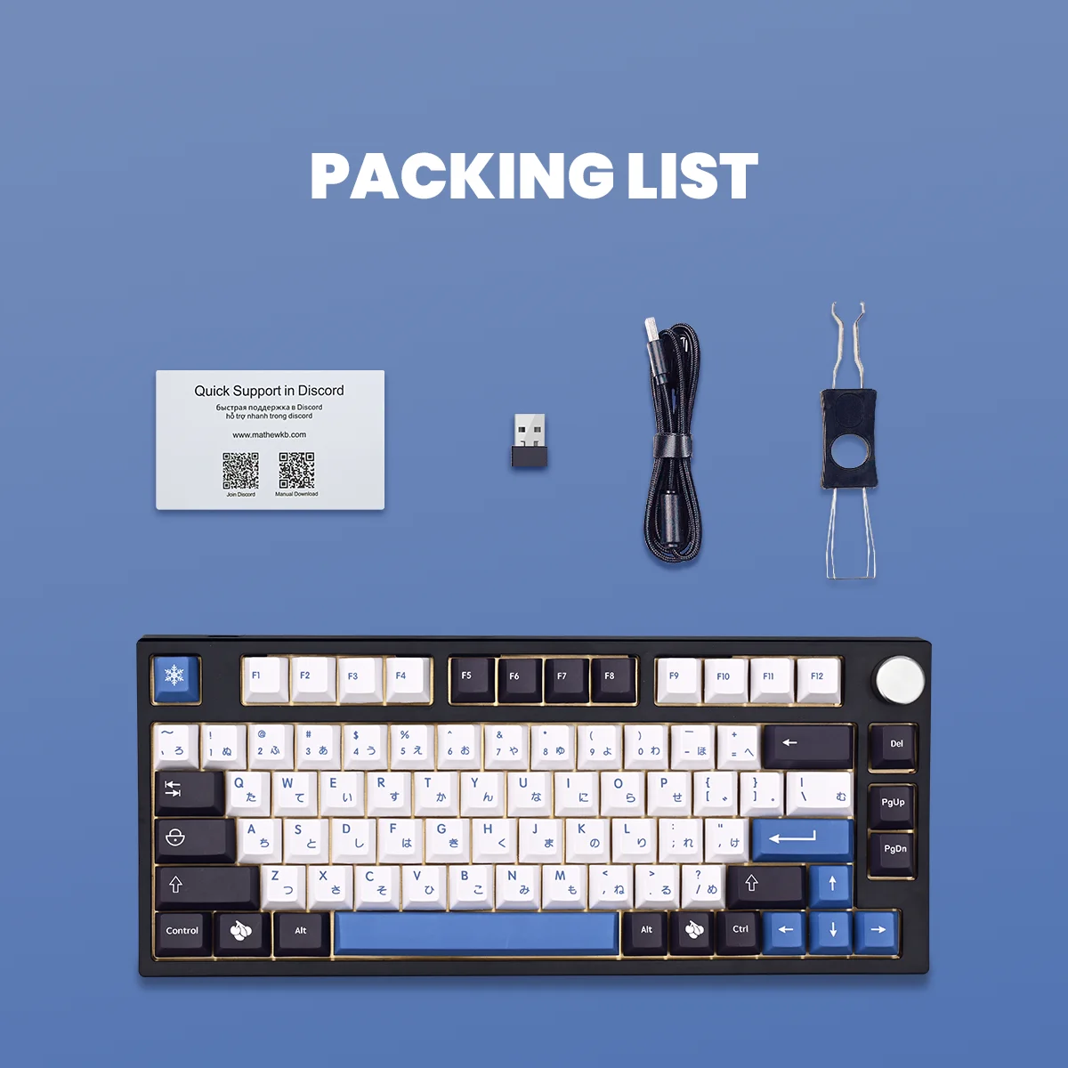 Comprar MATHEW TECH MK80 Max teclado mecánico ARCTIC cirílico, intercambiable en caliente inalámbrico de 3 modos, diseño 75%, interruptor de amarillo lechoso Gateron