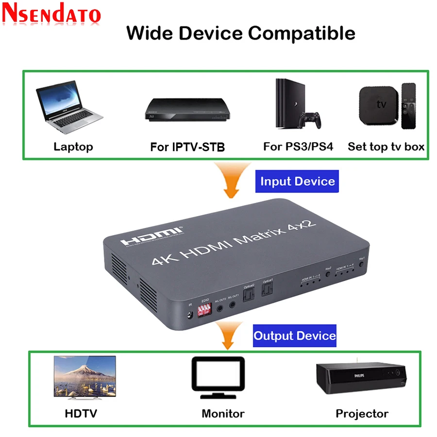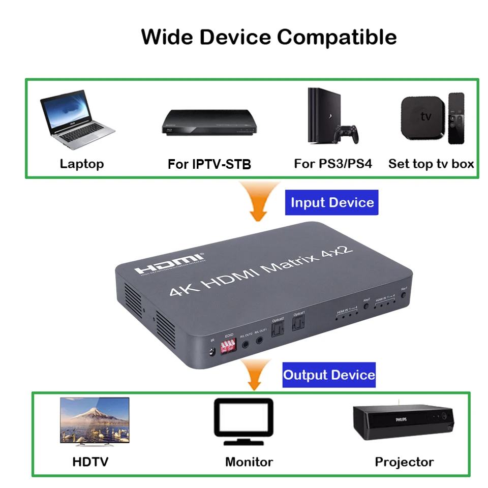 Comprar Matriz Compatible con HDMI 4x2 4K @ 30Hz HDR Switch Splitter 4 en 2 out Optical SPDIF 3,5mm Audio Extractor HDMI Switcher para PS4 HDTV
