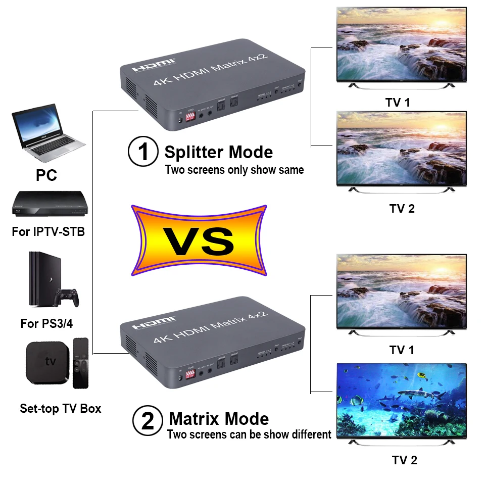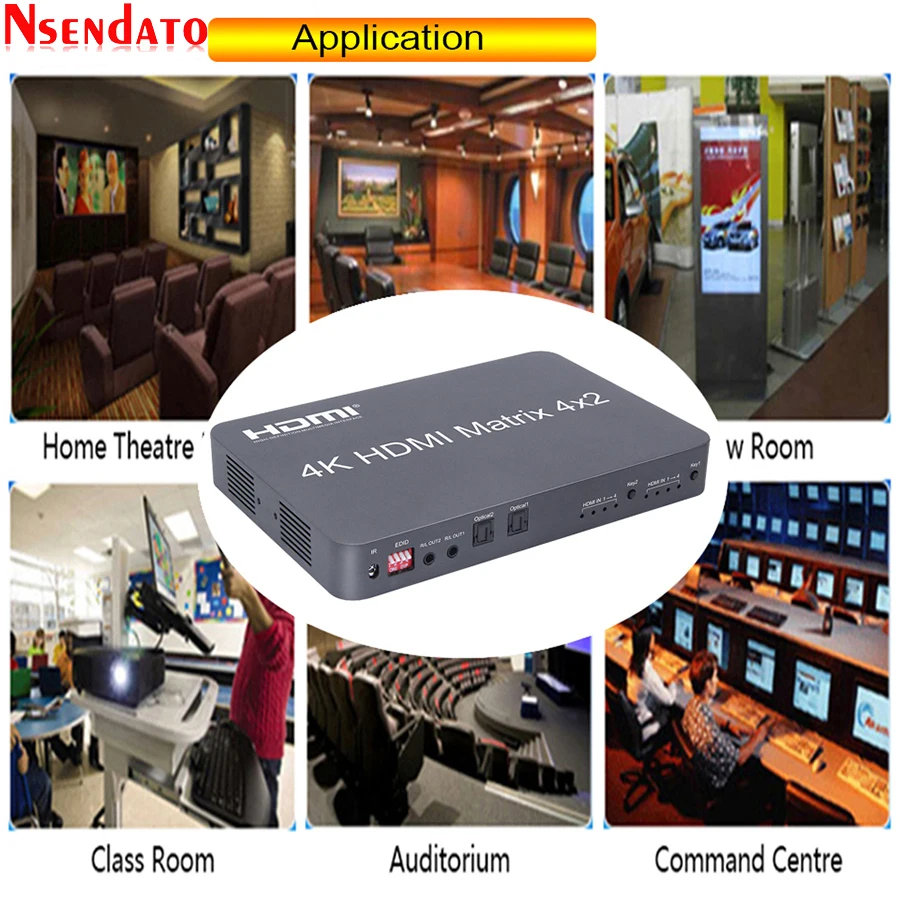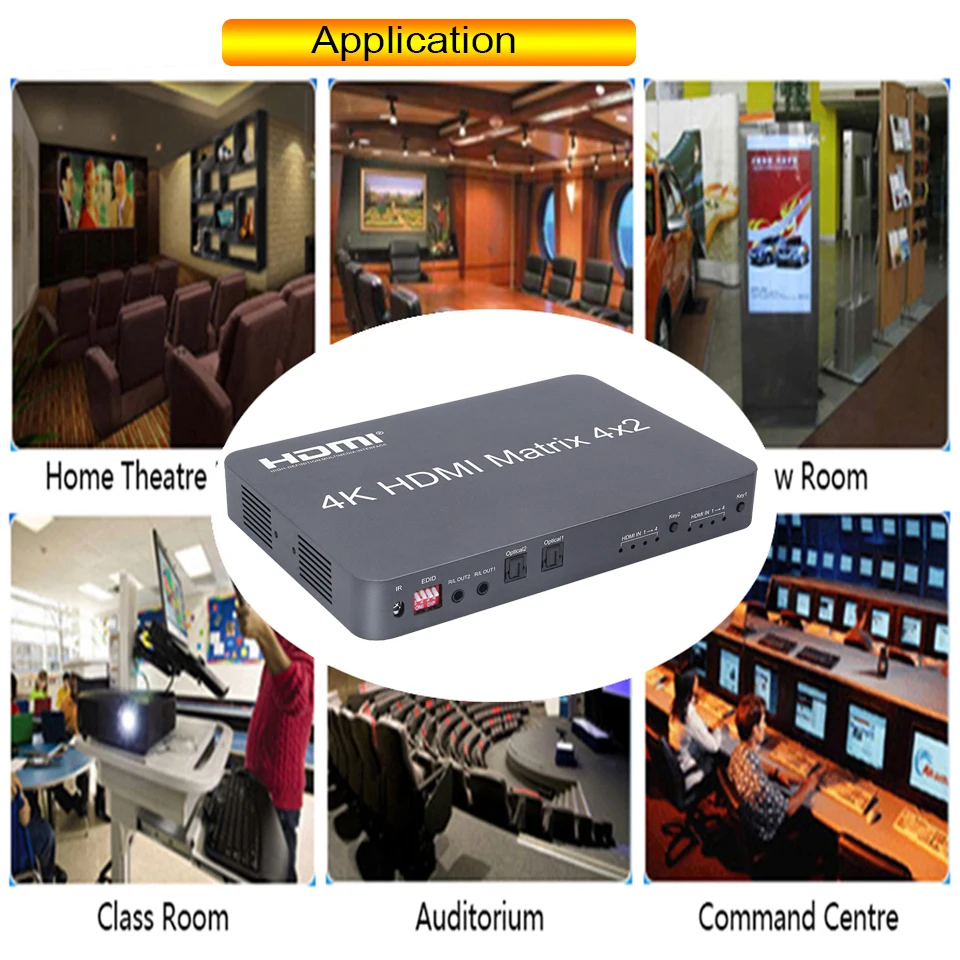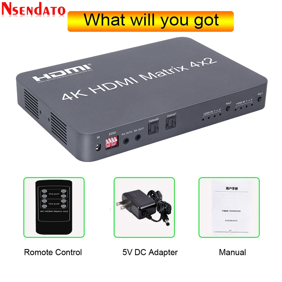 HDMI Matrix 4x2 4K @ 30Hz HDR Switch Splitter 4 en 2 salidas SPDIF óptico 3,5mm Jack Extractor de audio HDMI Switcher para PS3 PS4 HDTV