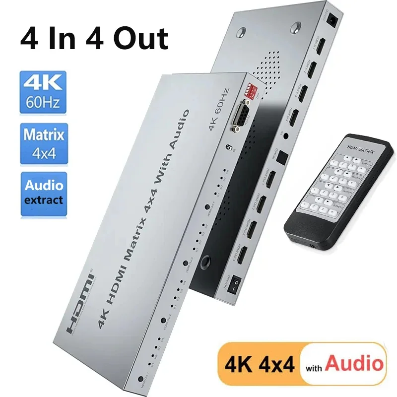 Comprar Matriz HDMI 4K 60Hz 4x4 con Extractor de Audio HDR 3D 1080P, conmutador de vídeo divisor 4 en 4 salidas HDCP2.2 EDID RS232 para PS4 PC a TV