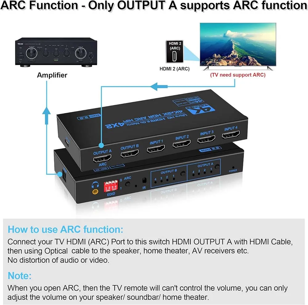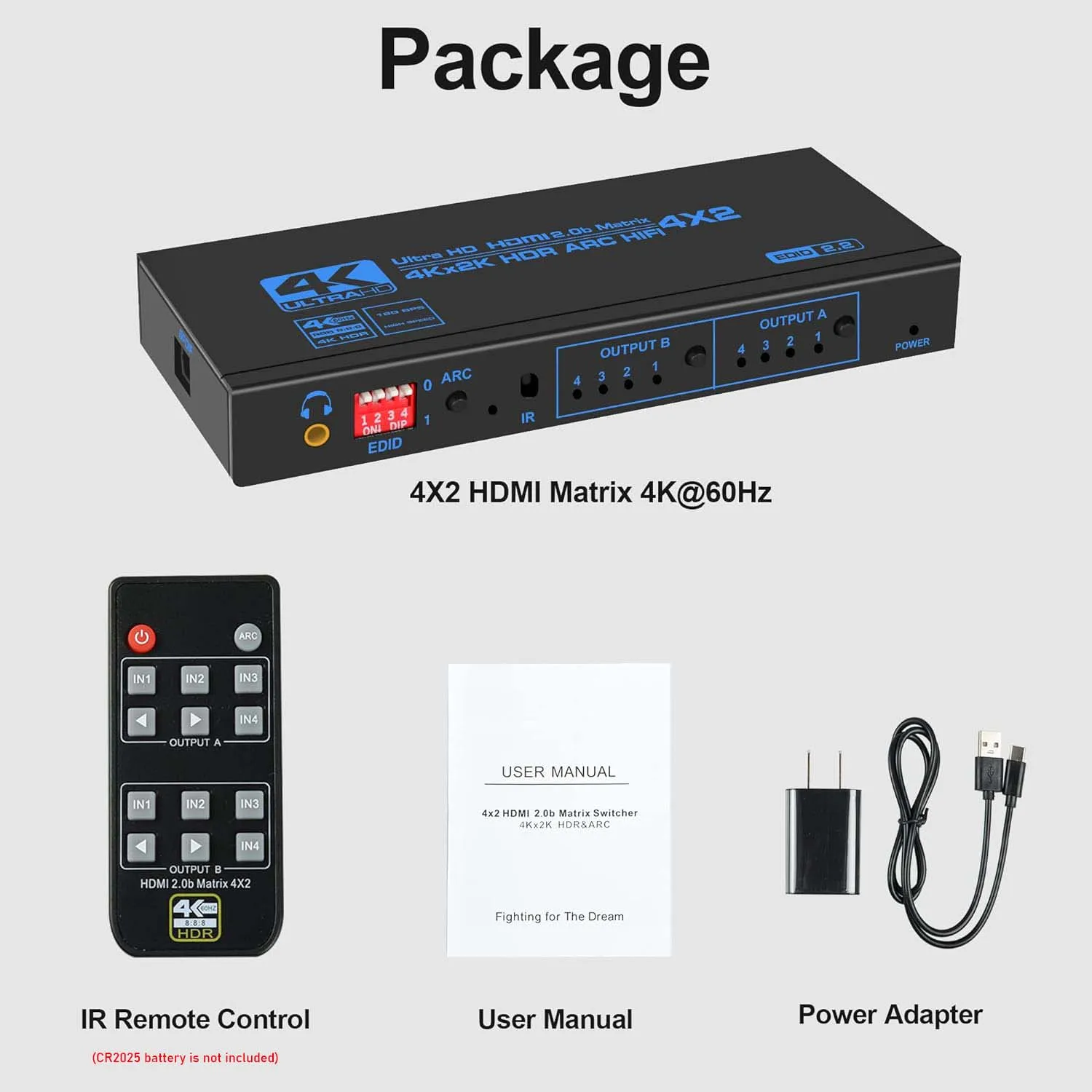 Comprar Matriz HDMI 4X2 con Audio 4K 60Hz HDMI 4 en 2 salidas divisor de interruptor de matriz HDCP 2,2 Audio EDID para PS4 Xbox DVD amplificador HDTV