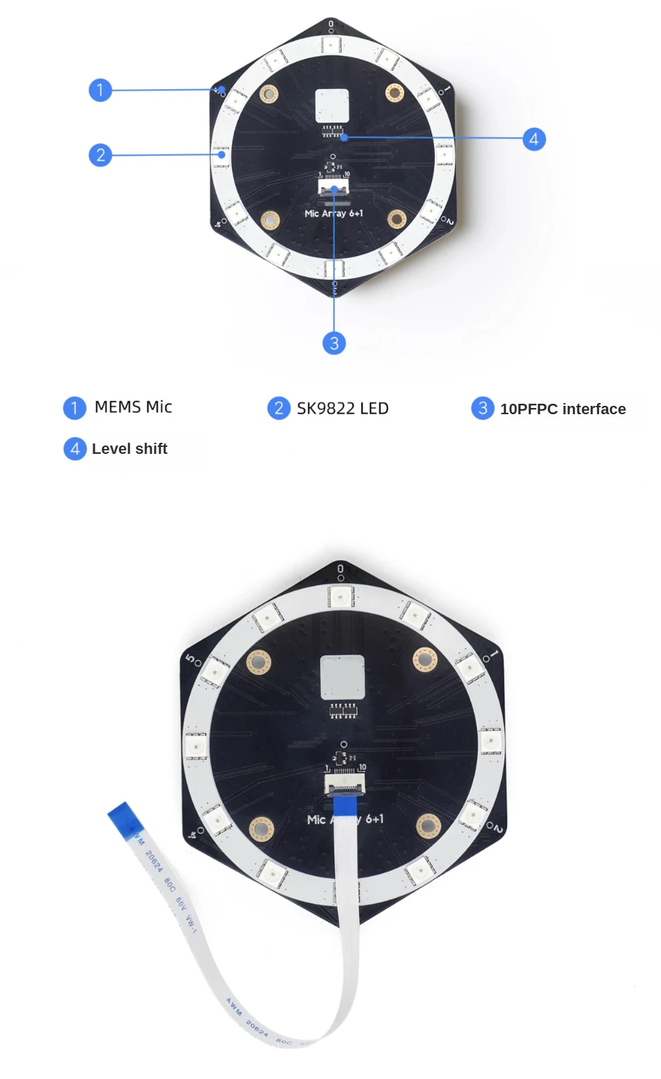 El módulo de matriz de micrófono está diseñado por Sipeed basado en el chip de micrófono digital MSM261S4030H0.El módulo tiene una alta sensibilidad de reconocimiento de sonido y relación señal-ruido, y se puede aplicar a la ubicación de la fuente de sonido, reconocimiento de voz, formación de haces y otras necesidades.