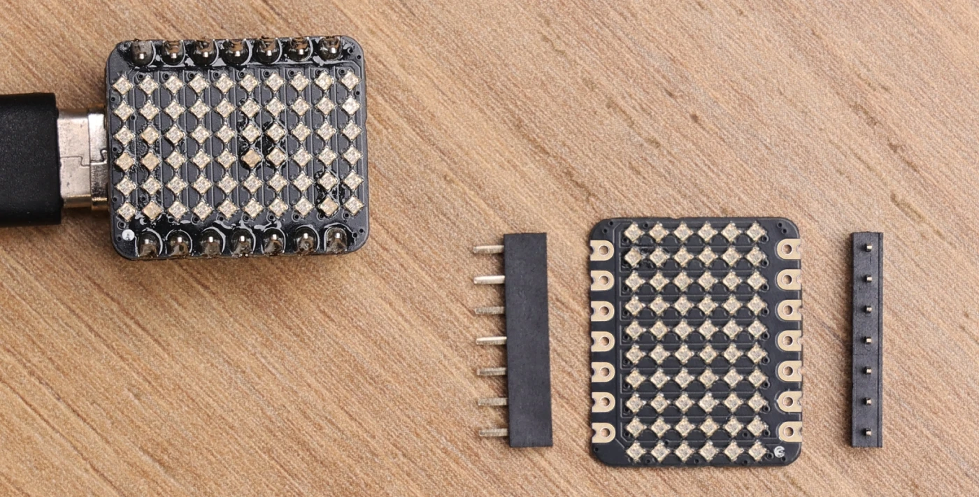Esta Placa de extensión de 6x10 RGB Matrix diseñada para Seeed Studio XIAO es el complemento perfecto para sus dispositivos portátiles con la serie XIAO. Esta notable matriz está diseñada para aportar un espectro vibrante de colores a sus proyectos. Empaquetamos 60 LED en un tamaño compacto donde cada uno es 1*1mm WS2812B LED. Va más allá de la mera estética, permitiéndole dar vida a sus visiones creativas. Ya sea que esté trabajando en una obra de arte interactiva, desarrollando un sistema de notificación dinámico o simplemente buscando agregar un toque deslumbrante a sus creaciones, esta matriz sirve como su lienzo definitivo. Perfectamente integrado con el controlador principal XIAO y QT Py para adafruit, con almohadillas de soldadura VCC, GND y DIN, ofrece una adaptabilidad sin igual para una amplia gama de escenarios.