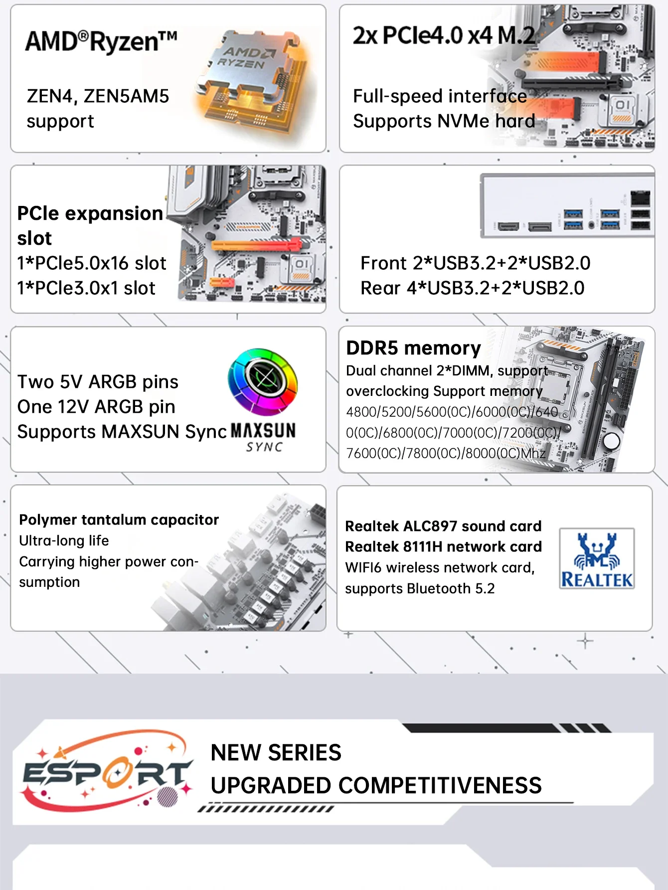 3.Opción placa base + CPU + RAM:Incluye placa base + CPU AMD R5 9600X + RAM DDR5 de 2*16 GB de 6000 Mhz