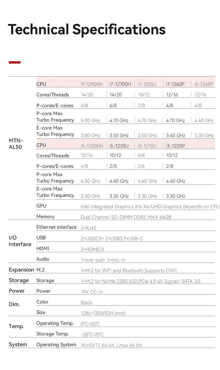 Comprar Maxtang-MINI PC Intel Alder Lake-P Series, procesador compatible con Win 10 11 Linux i7 1260P i5 1240P, novedad